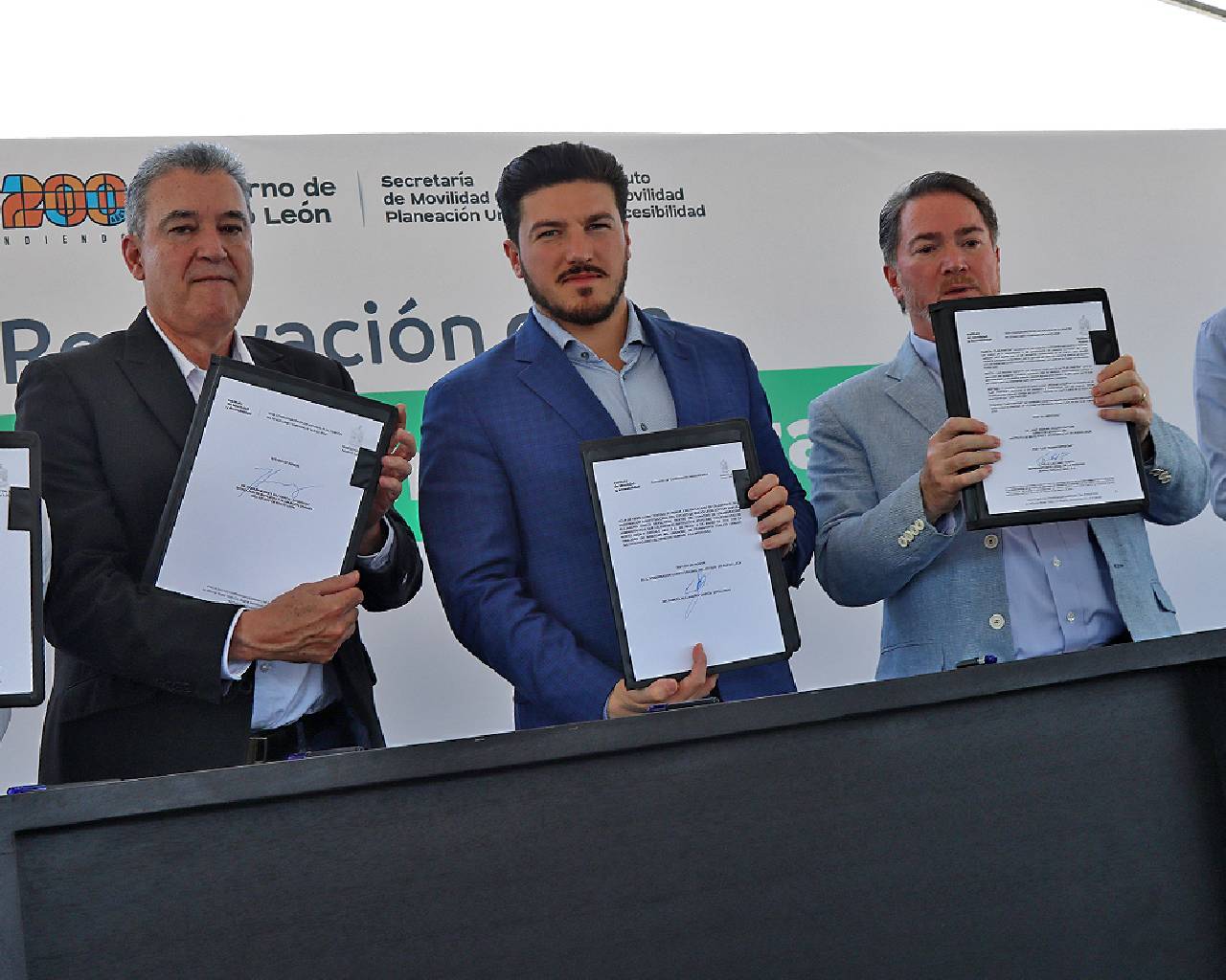 Monterrey, Nuevo León.- El Gobierno del Estado de Nuevo León dio a conocer el lanzamiento, en conjunto con empresarios, del programa continuo para la renovación de mil unidades de transporte público, mediante la firma de un convenio de colaboración.