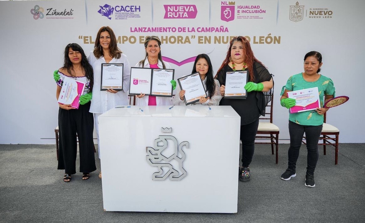 Monterrey, Nuevo León.- Para sensibilizar a la sociedad sobre la importancia de garantizar condiciones laborales justas y equitativas para las trabajadoras del hogar y que éstas actúen para garantizar el acceso a sus derechos, la Secretaría de Igualdad e Inclusión y el Centro de Apoyo y Capacitación para Empleadas del Hogar (CACEH), lanzaron la campaña El tiempo es ahora.