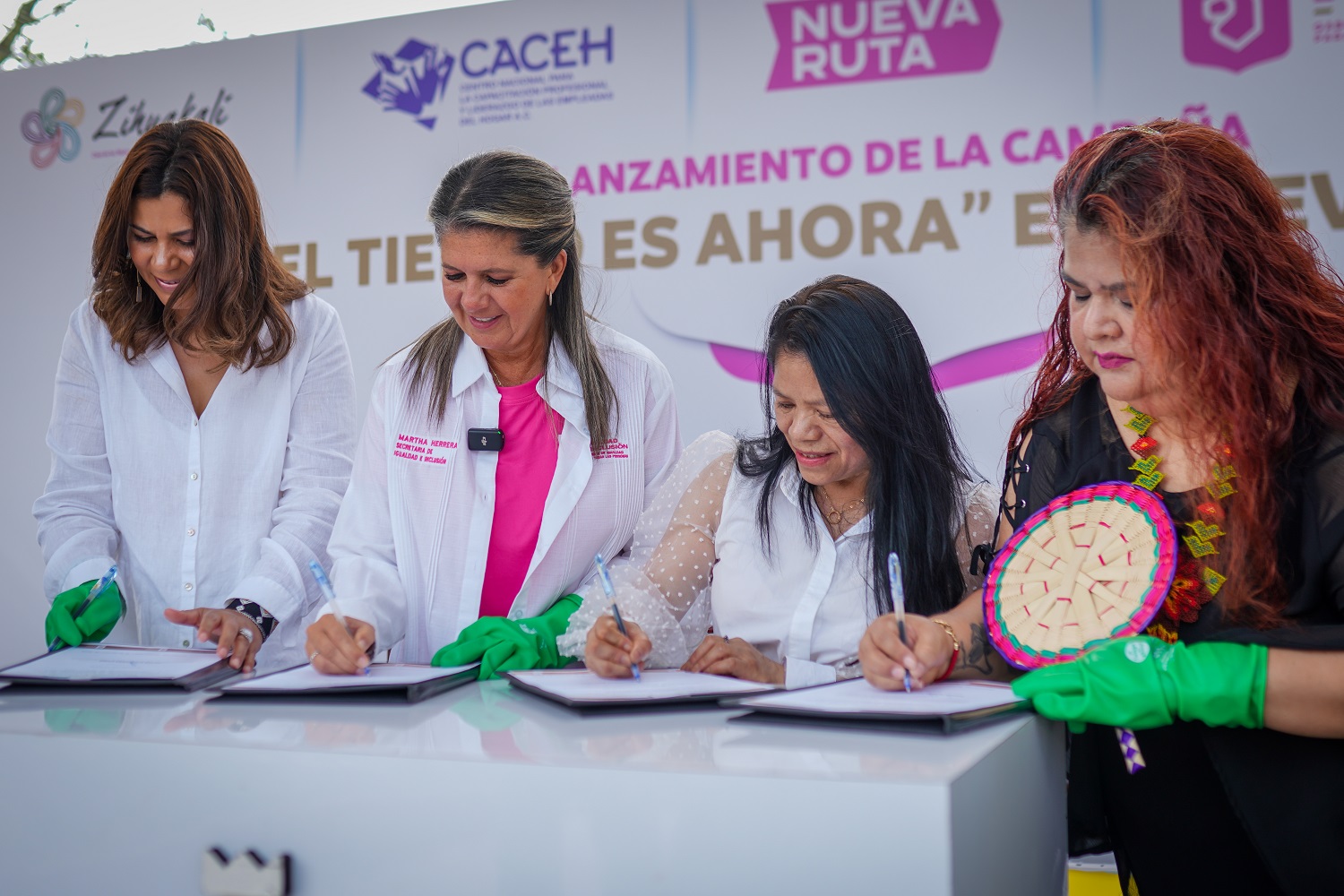 En la explanada de la Alameda de la capital, acompañada de Marcelina Bautista Bautista, representante de CACEH, la Secretaria Martha Herrera dijo que esta campaña es un llamado a la acción para garantizar que todas las trabajadoras del hogar conozcan y ejerzan sus derechos laborales.