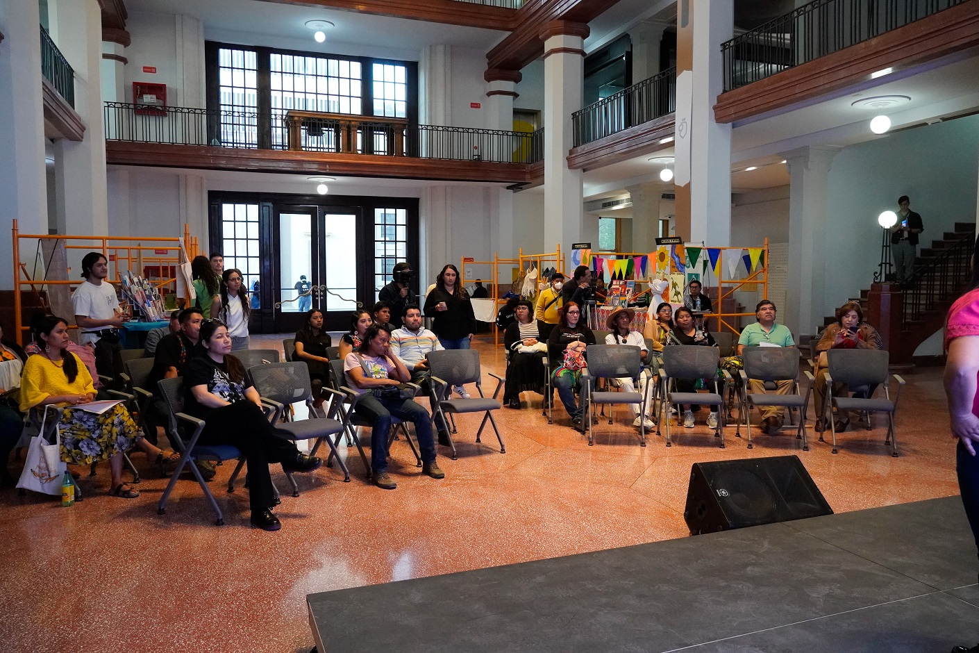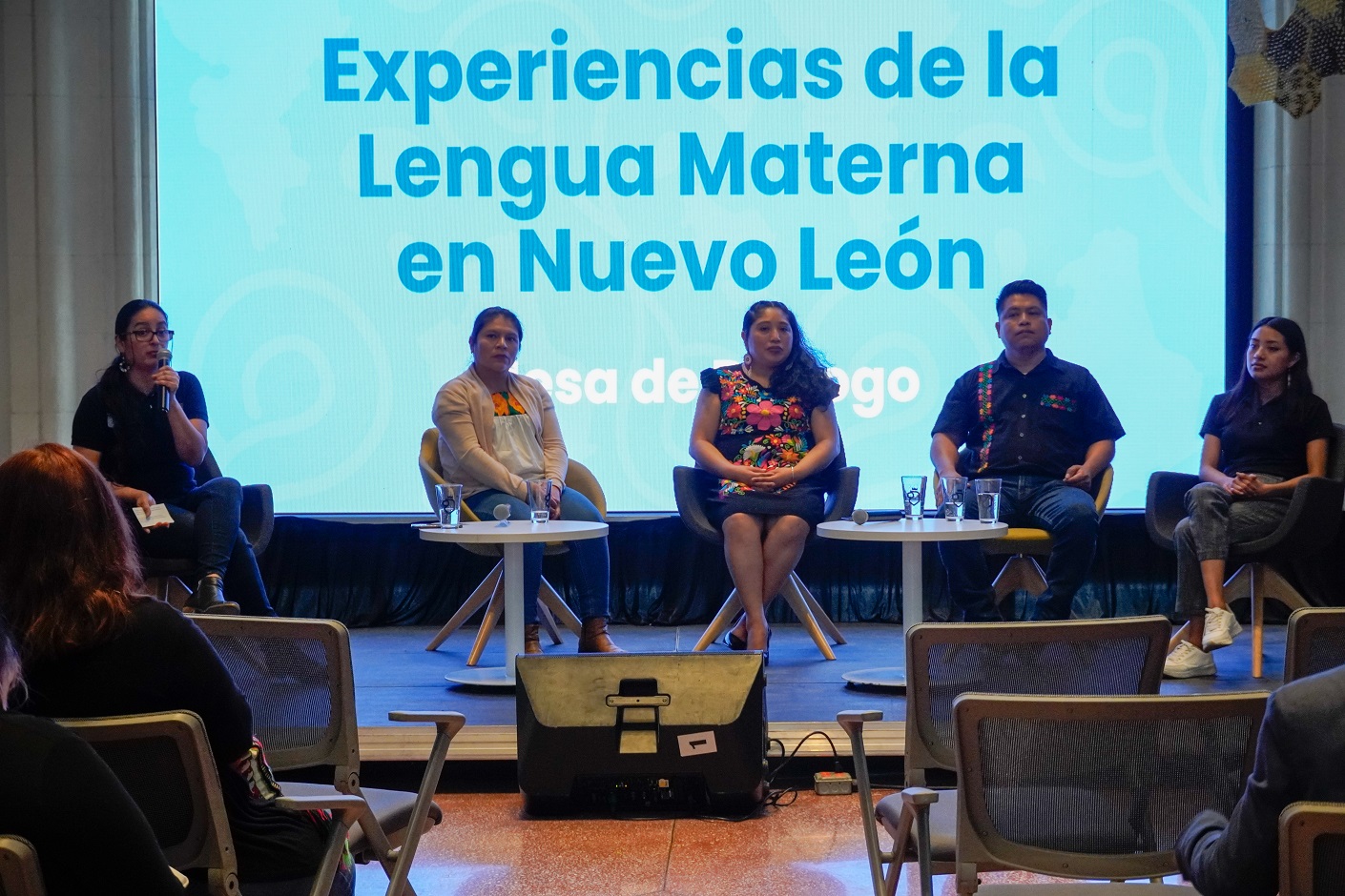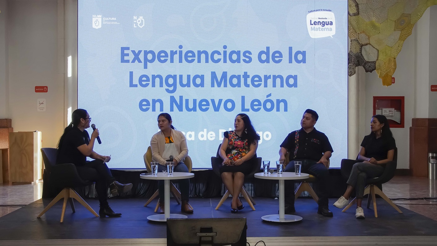 El evento gratuito ofreció una mesa de diálogo que abordó las experiencias de la lengua materna en Nuevo León, con la participación de diversas personas hablantes radicadas en el área metropolitana, Eleuterio Ángeles y Refugio Morales, cuya lengua materna es náhua; Elia Robles, quien se expresa en lengua wixárika, junto a Carmen Marin, en otomí.