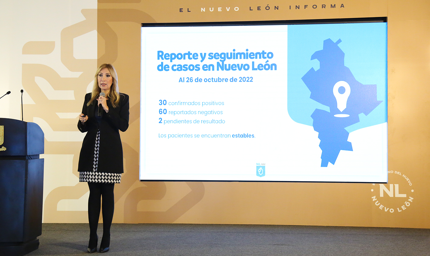 Respecto al COVID-19, el Semáforo Epidemiológico se mantuvo en el nivel más bajo por sexta semana consecutiva. El reporte del 26 de octubre registró 41 casos y 1 defunción. Hay 6 personas hospitalizadas, ninguno en cuidados intensivos, por lo que la tasa de ocupación en Nuevo León es de 0.3 por ciento.