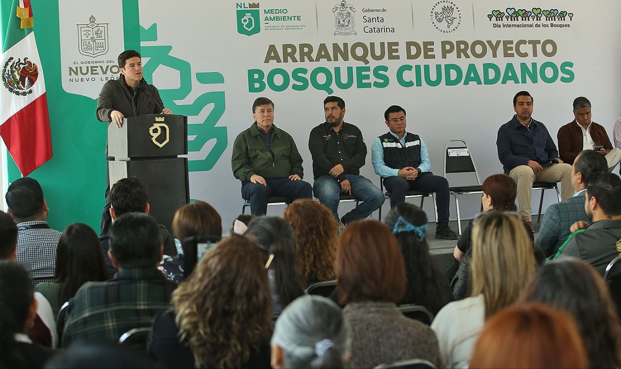 Santa Catarina, Nuevo León.- En el arranque de la primera fase de arborización de la Zona Metropolitana de Monterrey, en el marco del proyecto “Bosques Ciudadanos”, el Gobernador Samuel Alejandro García Sepúlveda hizo un llamado a todos los niveles de Gobierno y a la iniciativa privada para trabajar unidos por el medio ambiente del estado.