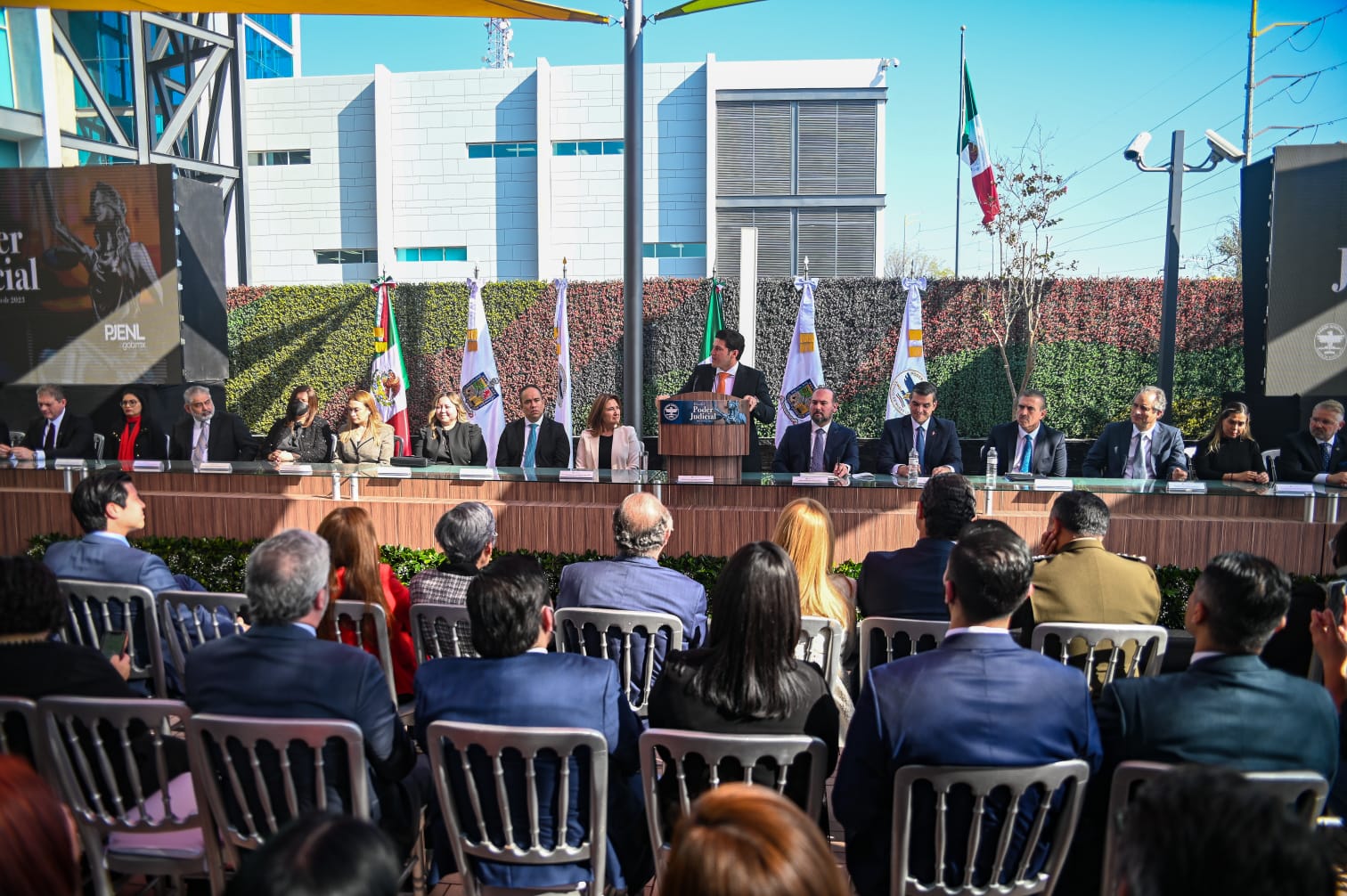 En la inauguración del nuevo Palacio de Justicia en el municipio de Apodaca, en donde se entregaron reconocimientos por su trayectoria a ex Magistradas del Poder Judicial, el Mandatario señaló que se requiere la suma de todas y todos por el bien de la ciudadanía.