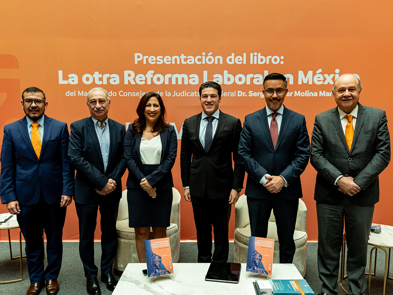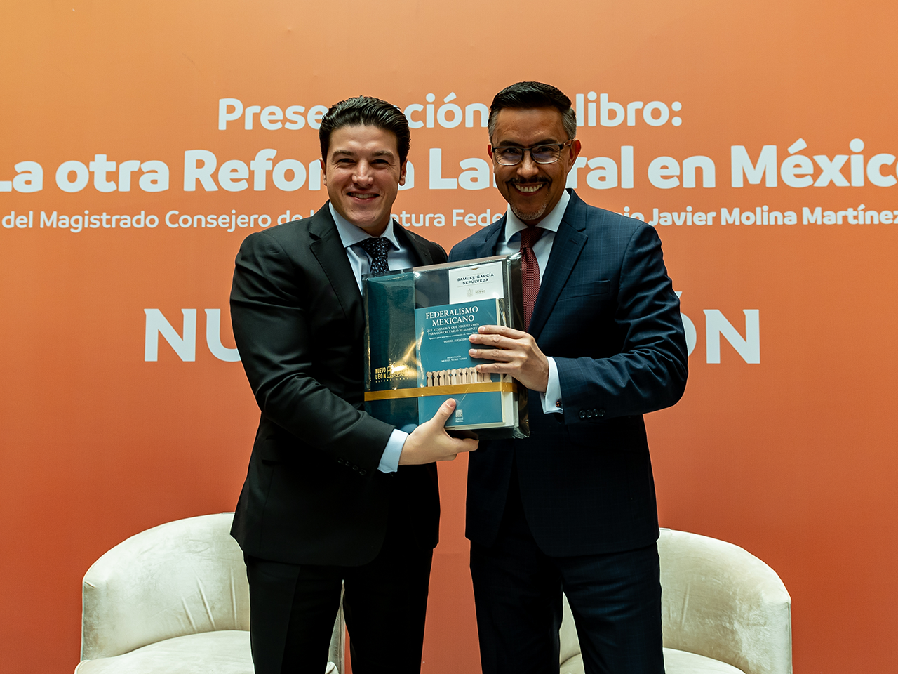 Monterrey, Nuevo León.- El Gobernador de Nuevo León, Samuel Alejandro García Sepúlveda participó este viernes en la presentación del libro “La otra reforma laboral en México” de Sergio Javier Molina Martínez, Consejero de la Judicatura Federal.
