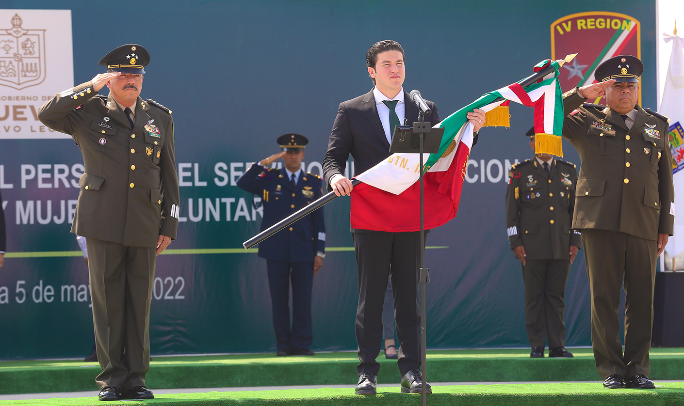 El Gobernador Samuel Alejandro García Sepúlveda también participó en la "Ceremonia de Protesta de Bandera al Personal del Servicio Militar Nacional (SMN) Clase 2003, Remisos y Mujeres Voluntarias".