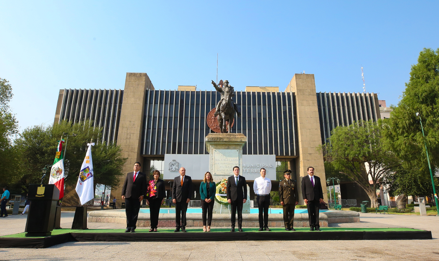 Asistieron a la ceremonia que se realizó en el monumento al General Zaragoza en el Palacio municipal de Monterrey, Javier Navarro, Secretario General de Gobierno; Sofíaleticia Morales Garza, Secretaria de Educación; Luis Donaldo Colosio Riojas, Alcalde de Monterrey e Ivonne Álvarez García, Presidenta del Congreso local.