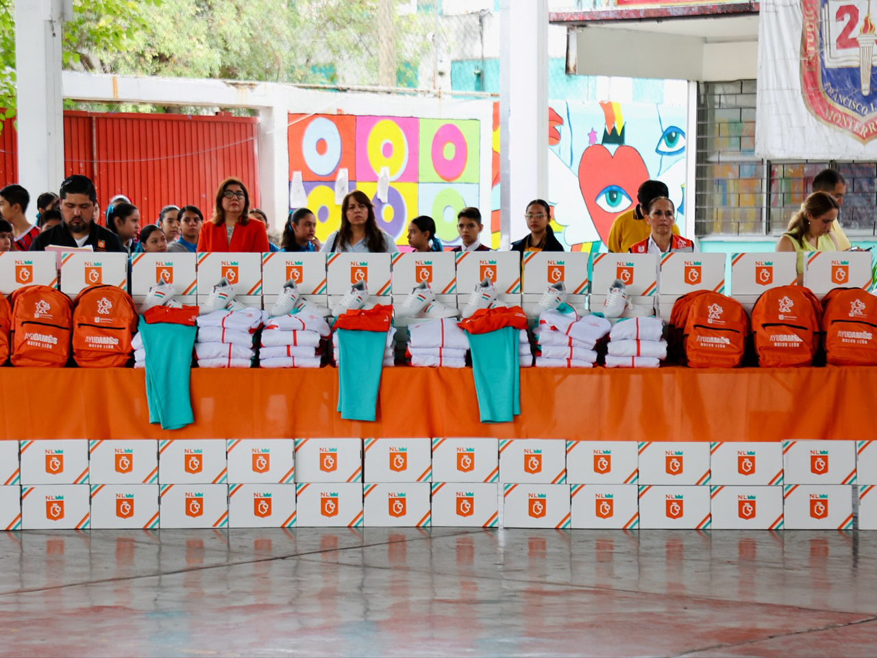 Durante el evento, se realizó la entrega simbólica de kits escolares a estudiantes de la Secundaria No. 23 y de escuelas invitadas, como la Secundaria No. 58 Profra. Angelina Garza, la Secundaria No. 36 Dr. David Peña y la Primaria José Eleuterio González.