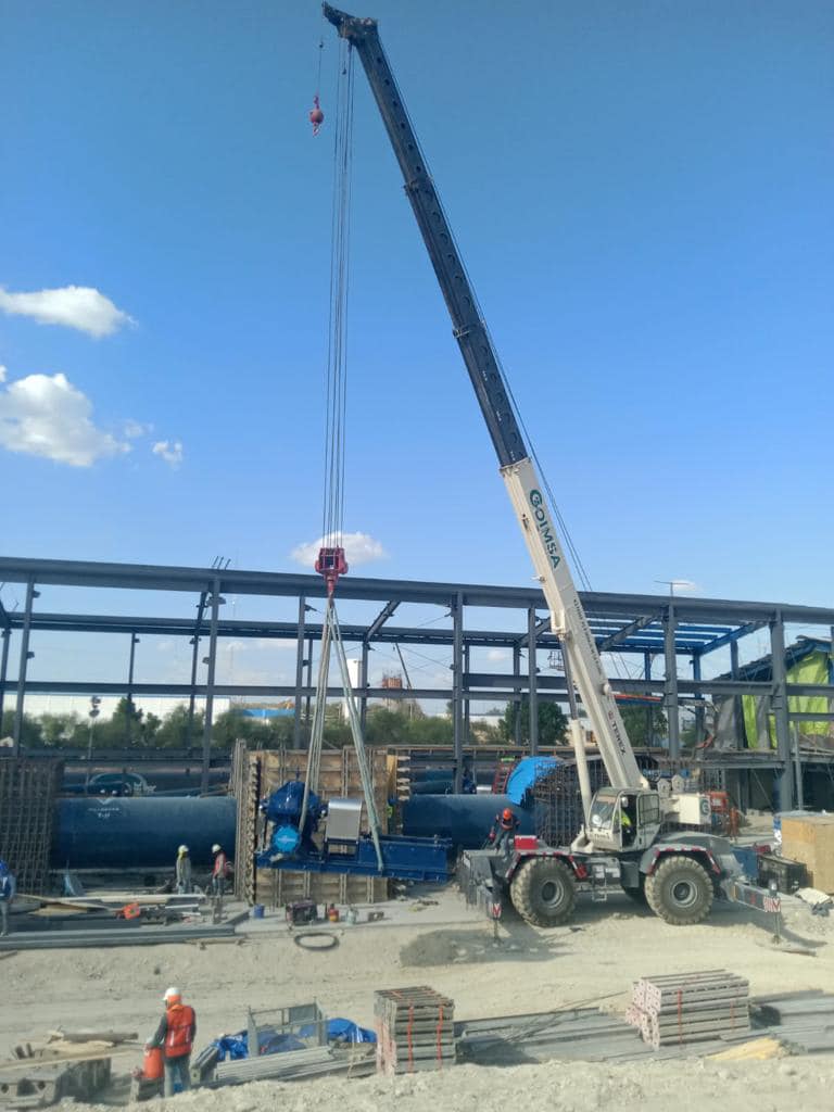 Monterrey, Nuevo León.- Este viernes dio inició el arribo de los equipos que se instalarán en las plantas de bombeo del Acueducto Cuchillo II, los cuales ayudarán a llevar el agua a través de 93 kilómetros, desde la obra de toma de la Presa El Cuchillo hasta la Potabilizadora San Roque, en donde iniciará su tratamiento para uso y consumo humano.