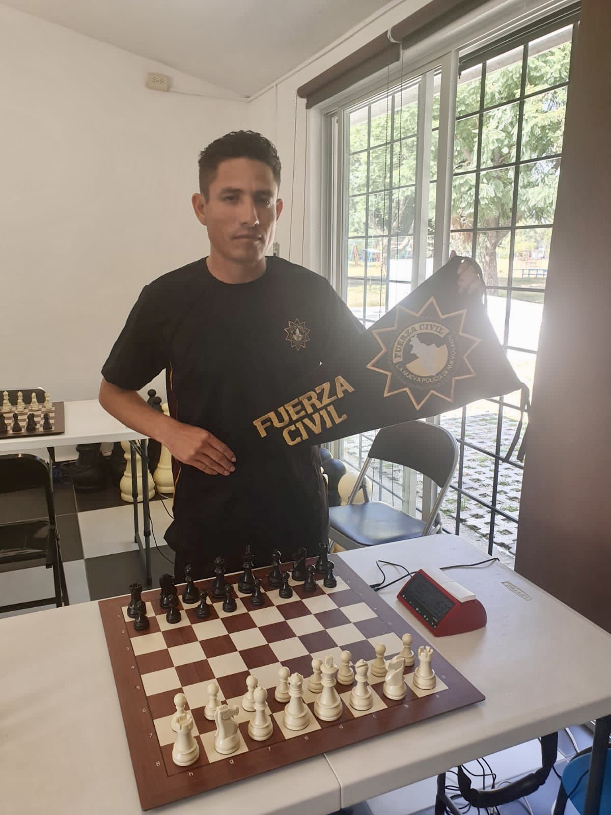 Felipe Zúñiga Arreola es desde este martes el primer policía de Fuerza Civil en ganar medalla de oro en la disciplina de ajedrez.