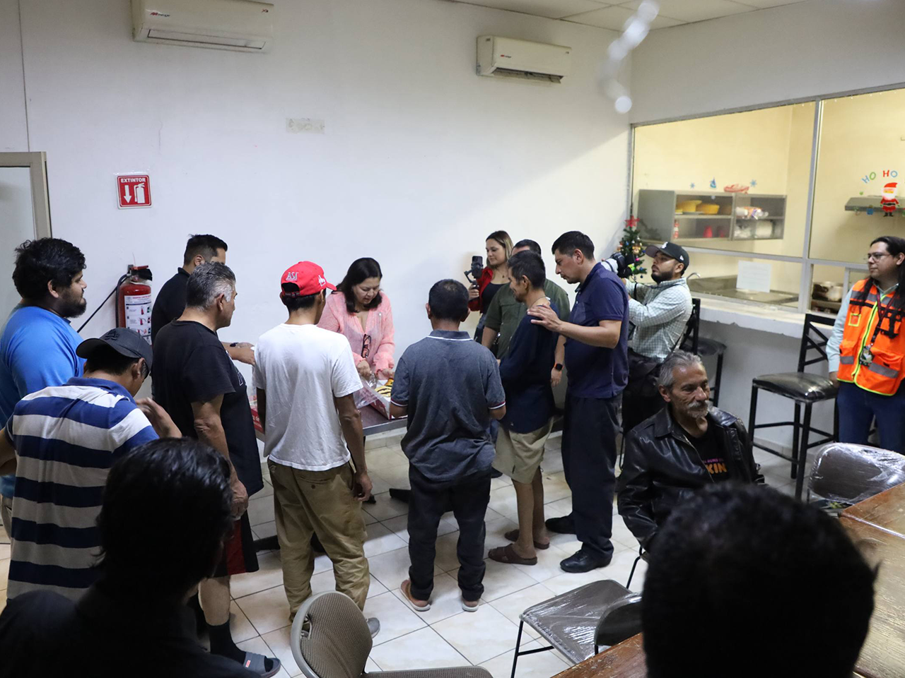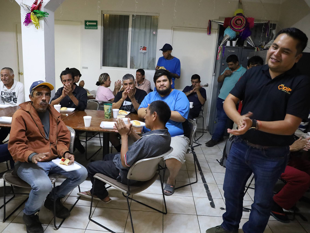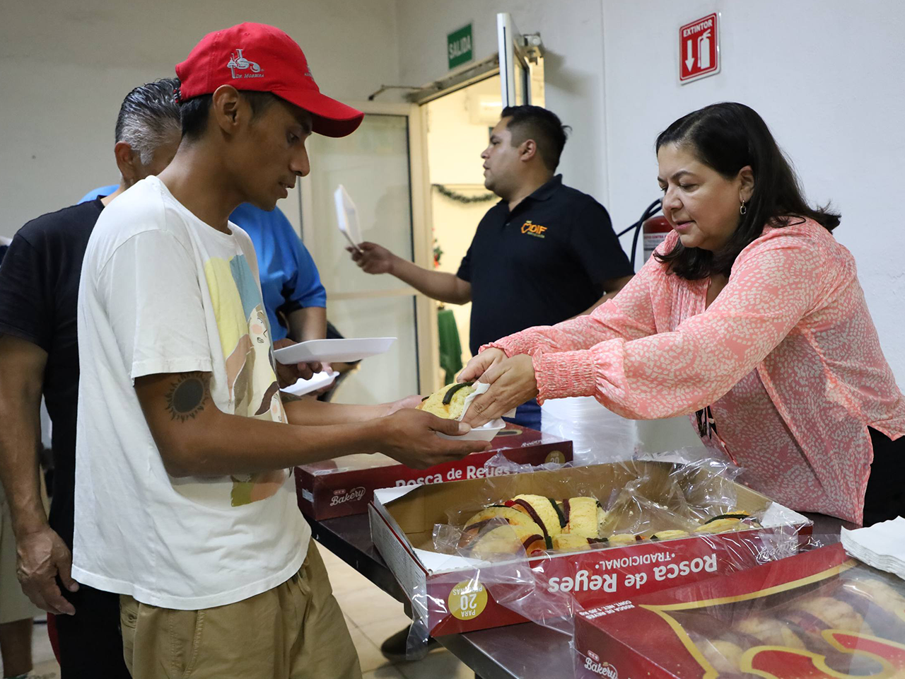 Durante la convivencia, 25 personas que actualmente se resguardan en el centro disfrutaron de una merienda que incluyó chocolate caliente y el tradicional pan, en un ambiente de cercanía y atención directa por parte de las autoridades estatales, en esta convivencia también pudieron disfrutar de la rosca de Reyes, dos guardias de seguridad y tres colaboradores que laboran en el albergue.