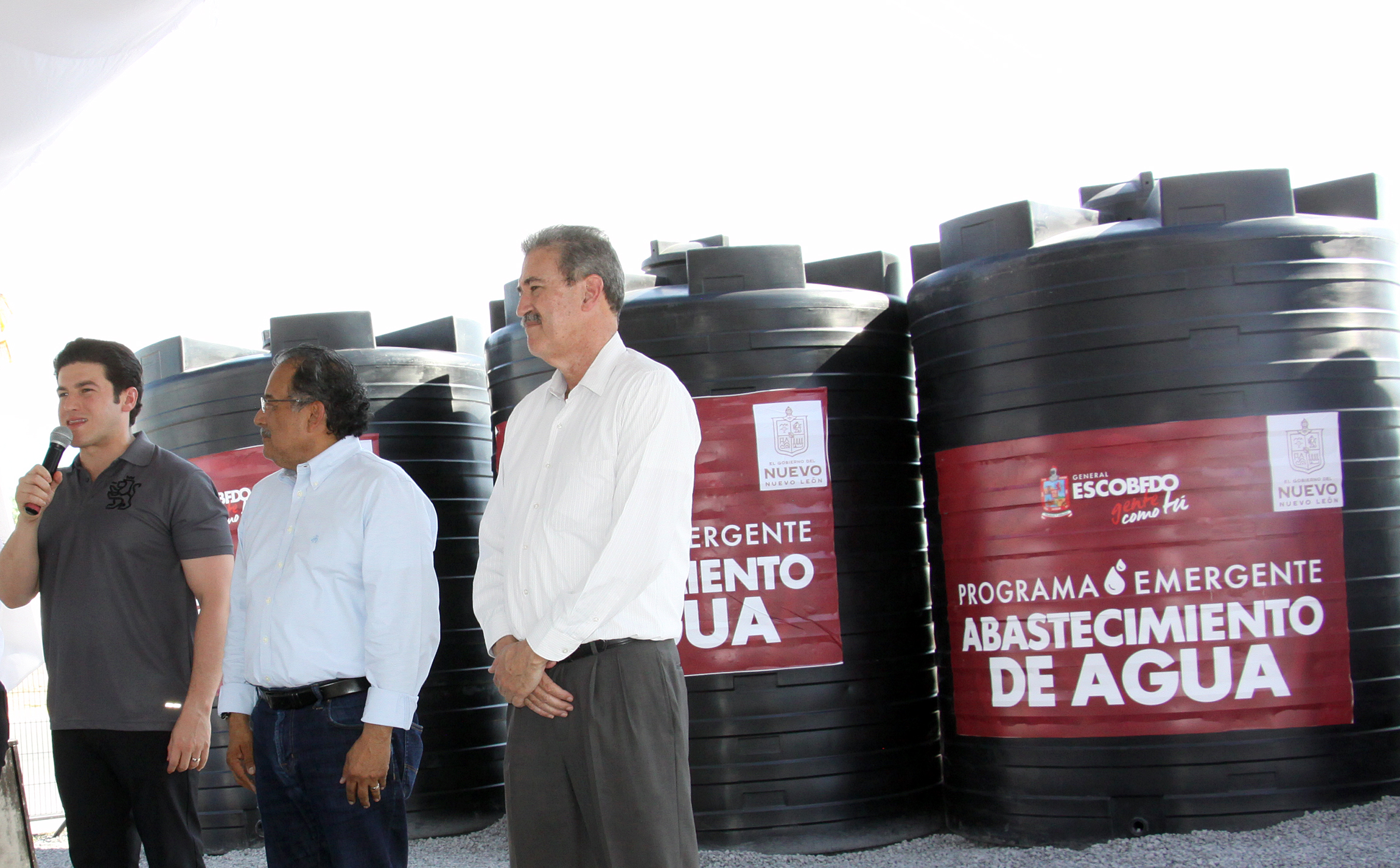 En la colonia Laderas de San Miguel, el Mandatario estatal y el Alcalde de Escobedo, Andrés Mijes, encabezaron la instalación y puesta en marcha de 30 tanques con capacidad de 10 mil litros que facilitarán el traslado de agua a los vecinos de al menos 50 colonias de la zona.