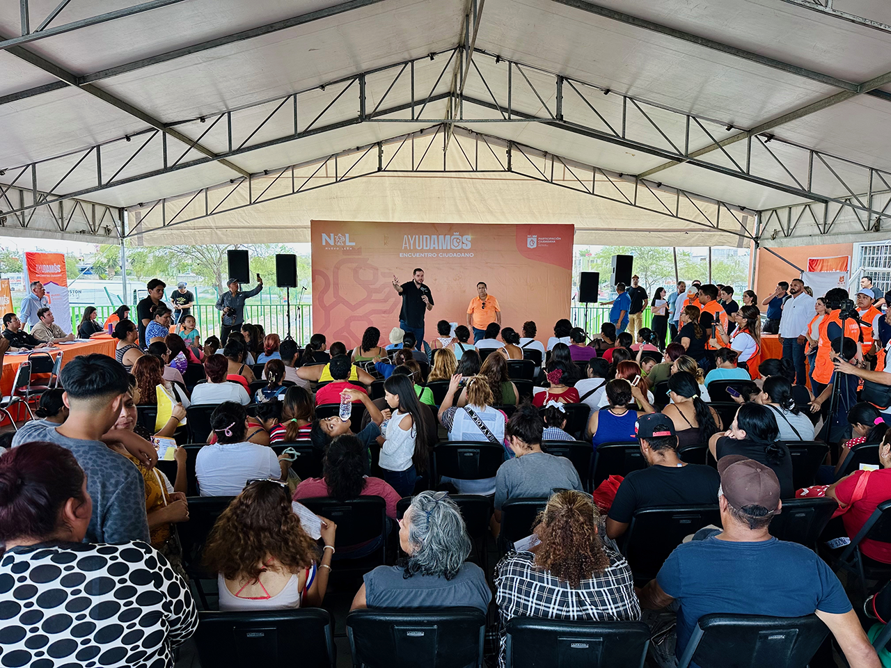 Cadereyta, Nuevo León.- Más de mil personas de la Colonia Valle del Roble, en Cadereyta, fueron beneficiadas con los programas y servicios del Gobierno del Estado a través del Encuentro Ciudadano Ayudamos.