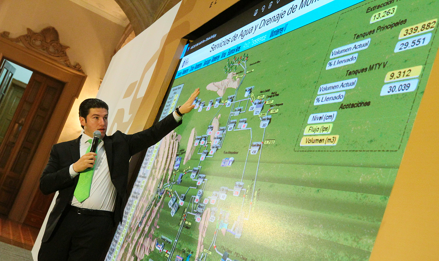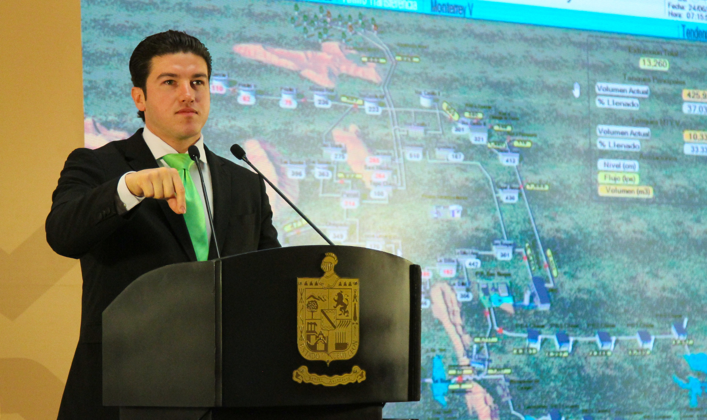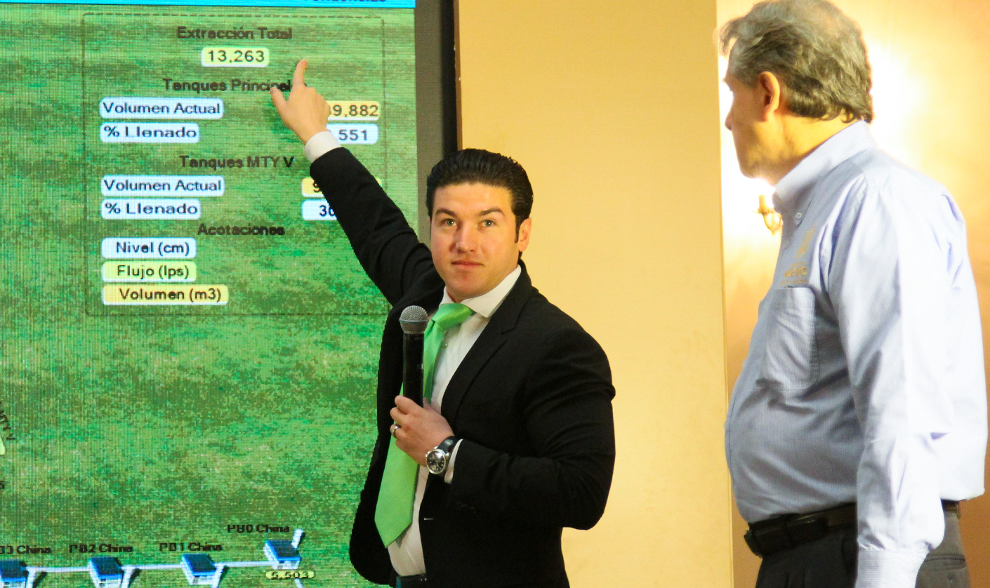 “Pero la gran noticia es que al haber subido ya a 13 mil, de 11 mil a 13 mil (litros por segundo) vean ustedes, sean testigos ustedes de los tanques, la mitad de la ciudad, miren Santa Catarina, San Pedro, Contry, San Roque, Apodaca y Guadalupe”, dijo.
