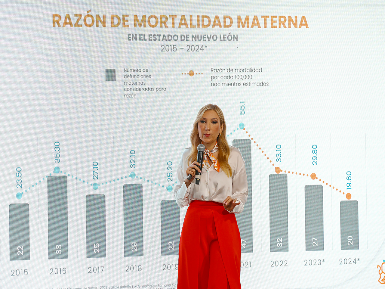 “Cuando llegamos en el 2021, teníamos una razón de mortalidad materna, la más alta seguramente en la historia, de 55.1 por ciento por cada 100 mil recién nacidos, había factores como el Covid que habrían favorecido a este aumento, rápidamente bajamos a 33.1, y este año 2024 cerramos con la morbilidad materna más baja de los últimos 10 años”.