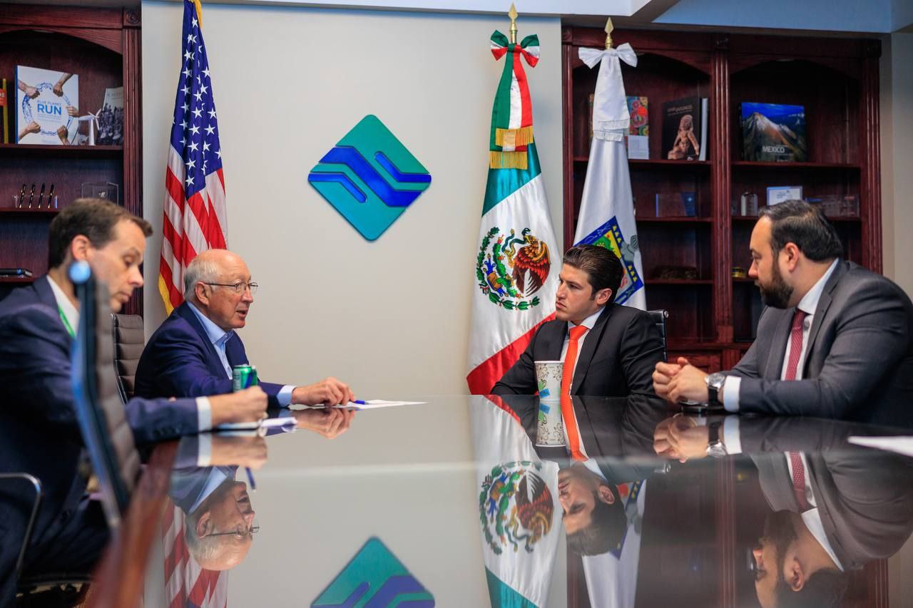 Al concluir su conferencia en el Foro Ambiental Fronterizo 2022 de NADBank, el Gobernador Samuel Alejandro García Sepúlveda sostuvo un encuentro con el Embajador de Estados Unidos en México, Ken Salazar, con quien abordó los proyectos estratégicos que se llevan a cabo en la entidad en materia hídrica y seguridad para beneficio de las y los ciudadanos.