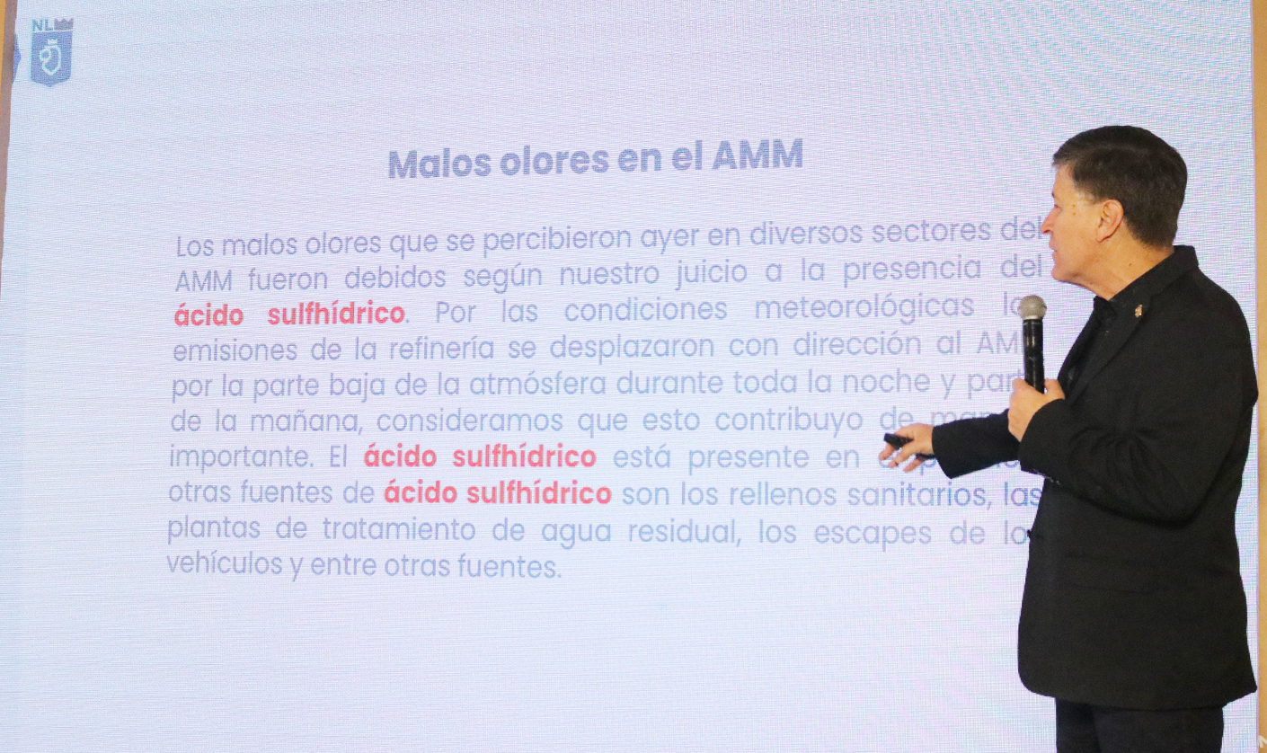 Acompañado de la directora de la Agencia de la Calidad del Aire, Armandina Valdez Cavazos, el titular de la dependencia, Alfonso Martínez Muñoz explicó que la situación se debe a que no funcionan las desulfuradoras de la empresa como se ha dado a conocer anteriormente, por las que ya se ha hecho el llamado a la compañía de jurisdicción federal, y descartó reportes de daños a la salud de la ciudadanía.