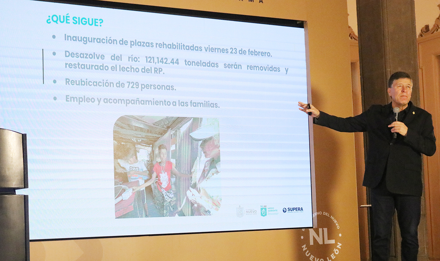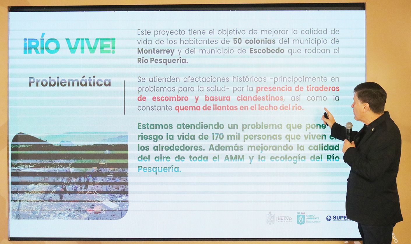 Por otro lado, en el Nuevo León Informa, el Secretario de Medio Ambiente informó sobre los avances del proyecto “Río Vive” que se realiza en el Río Pesquería, del que a la fecha se han retirado casi 8,000 toneladas de basura removidas, se llevó a cabo la clausura de 49 lotes conocidos como “portones” donde se tiraba escombro y se hacía quema de llantas; además de la rehabilitación de cuatro parques con la colaboración de la Cámara Nacional de la Industria de Desarrollo Y Promoción de Vivienda (CANADEVI), que se inaugurarán la próxima semana.