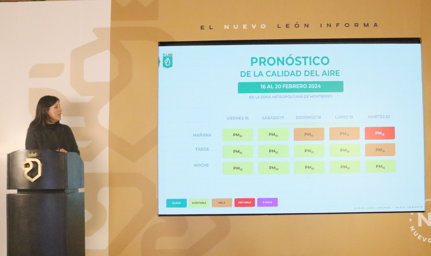 Además, en la conferencia, la directora de la Agencia de la Calidad del Aire, Armandina Valdez presentó el pronóstico de la calidad del aire, las cuales dijo serán favorables ante las condiciones de lluvia que se registran en la urbe regia, no obstante precisó que para que se cumplan los efectos positivos se requiere de la cooperación de las empresas.