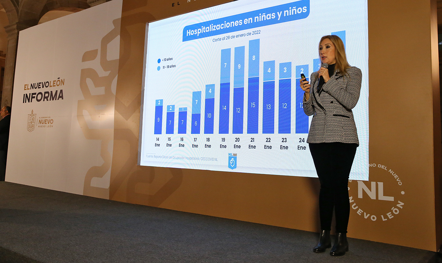 Detalló que de acuerdo a los procesos de secuenciación realizados, el 98 por ciento de los casos actuales en Nuevo León corresponden a la variante Ómicron.