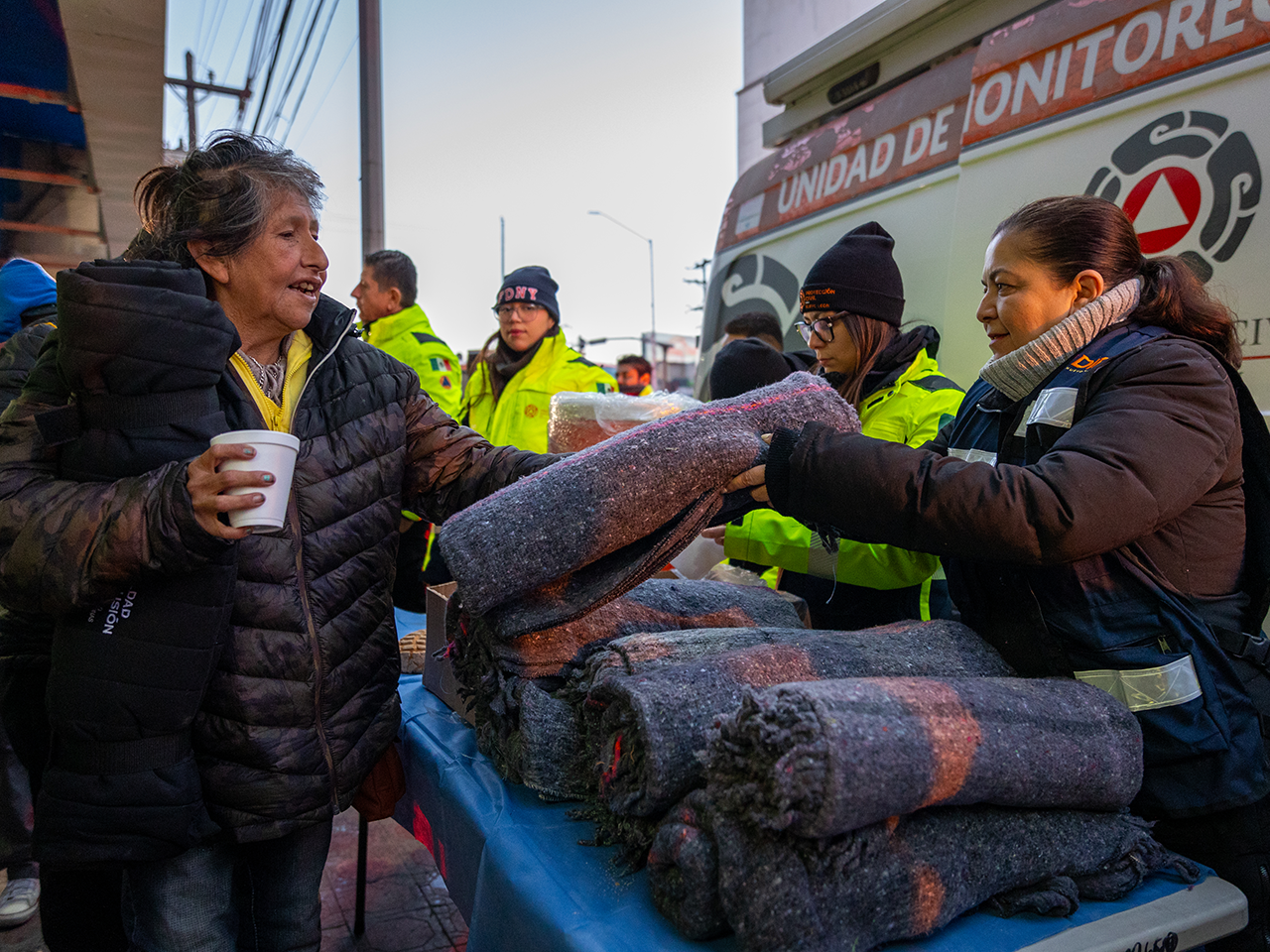 Durante la temporada invernal 2024-2025, el Estado lleva a cabo operativos con entrega de cobertores y chocolate caliente, así como implementó la adaptación de refugios para las personas en situación de calle.
