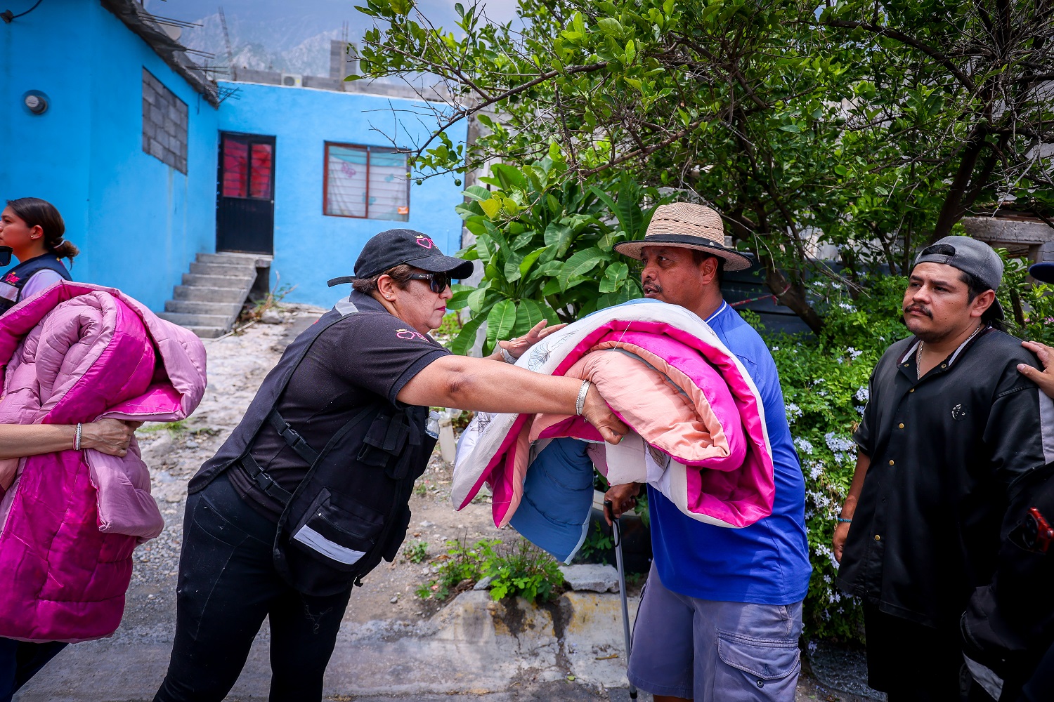 En el recorrido por esta colonia de la capital, estuvieron también los equipos de la Secretaría de Participación Ciudadana, Limpialeón y el DIF Nuevo León, con la entrega de colchonetas, así como de Agua y Drenaje quien acercó una pipa de agua potable a las familias de esta zona.