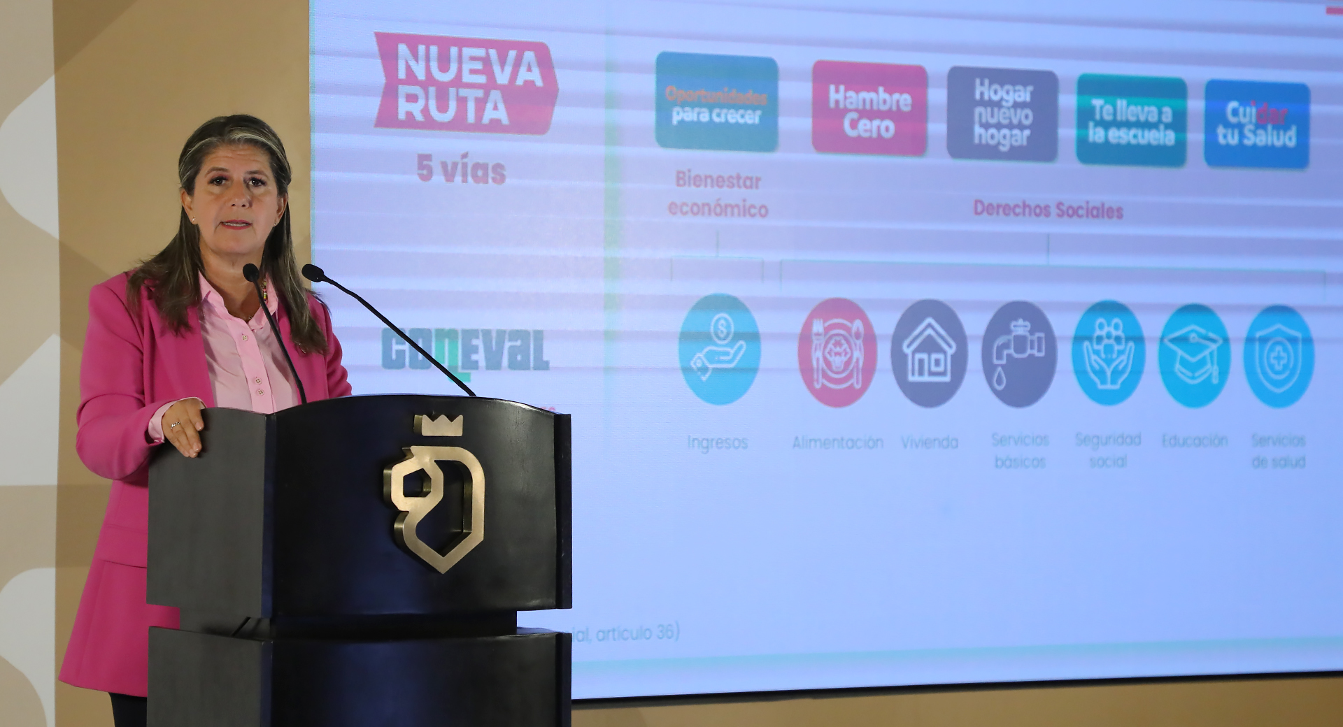 Al presentar en el espacio del Nuevo León informa los resultados de la Medición Multidimensional de la Pobreza 2022 del Consejo Nacional de Evaluación de la Política de Desarrollo Social (Coneval), la funcionaria destacó la implementación de La Nueva Ruta que sentó las bases para cerrar las brechas de desigualdad en el estado, a través de sus 5 vías que permiten acercar los derechos de alimentación, salud, educación, vivienda, ingreso y trabajo a las personas más vulnerables.