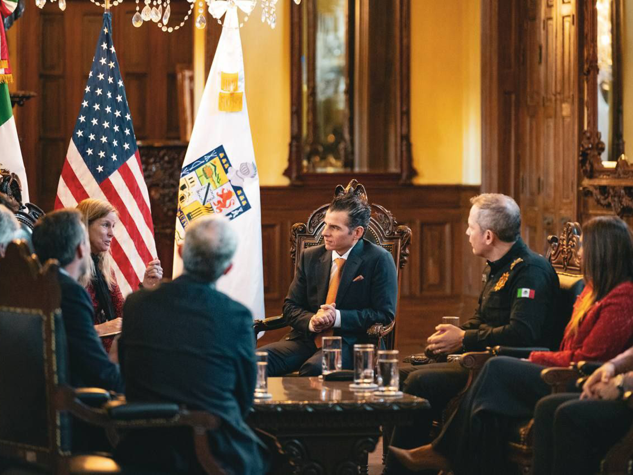 En la reunión también estuvieron presentes Matthew Hurley, Jefe de la Sección Consular; Alexander Sharp, Cónsul para Asuntos Económicos y Políticos; Jerome L. Sherman, cónsul para Educación, Prensa y Cultura; Daniel Bergin, agregado Seguridad Diplomática; Gerardo Escamilla, Secretario de Seguridad de Nuevo León; Betsabé Rocha, Secretaria de Economía y José Francisco Ibargüengoytia Borrego, Subsecretario de Infraestructura