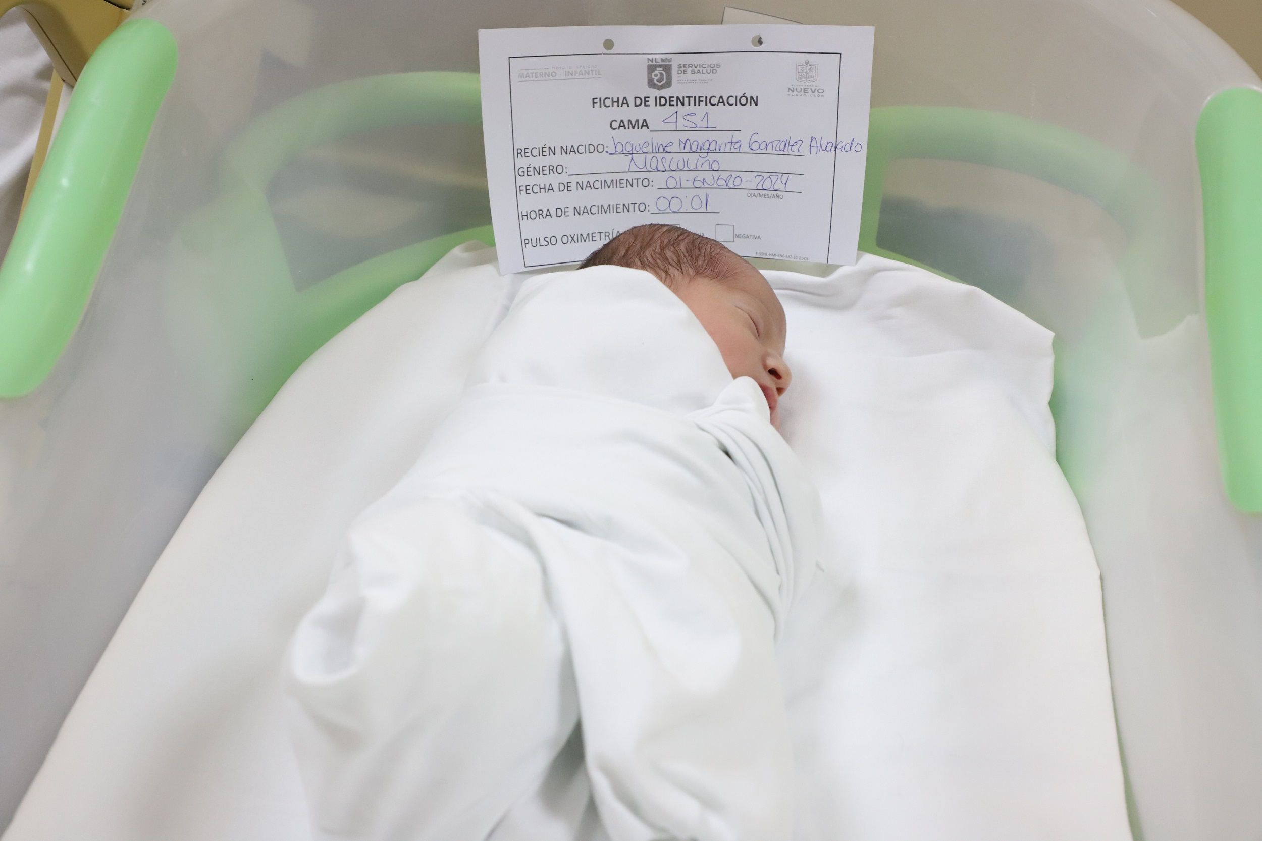 Guadalupe, Nuevo León. - El Hospital Regional Materno Infantil registró el primer nacimiento del 2024 a las 00:01 horas del 1 de enero con la llegada de Andrik Eduardo, quien pesó 3.540 kilos y midió 51 centímetros.