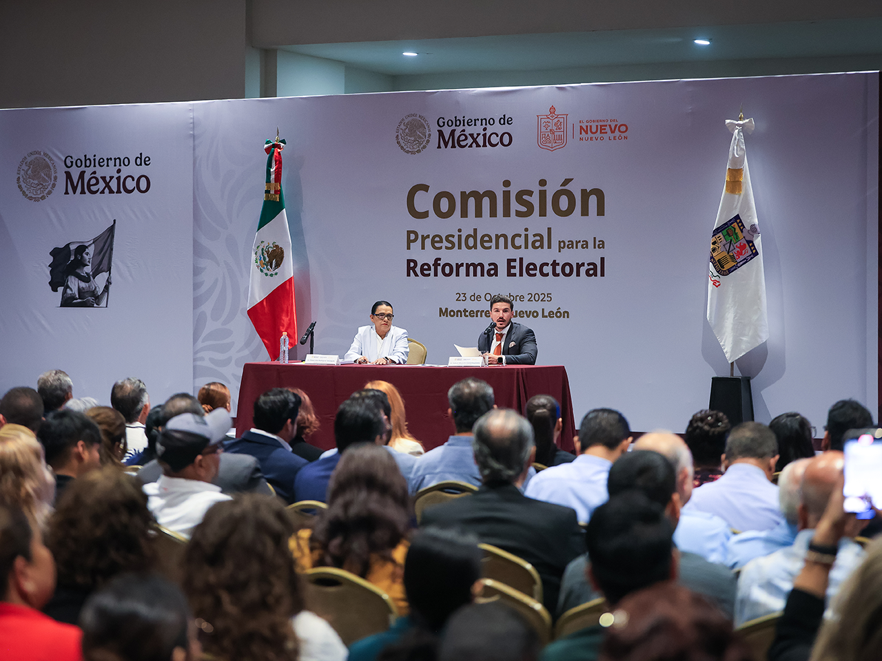 Monterrey, Nuevo León.- Al reconocer el trabajo del Gobierno Federal por lograr un consenso en favor de la democracia, el Gobernador Samuel Alejandro García Sepúlveda participó en la Audiencia de la Comisión Presidencial para la Reforma Electoral realizada en Cintermex.