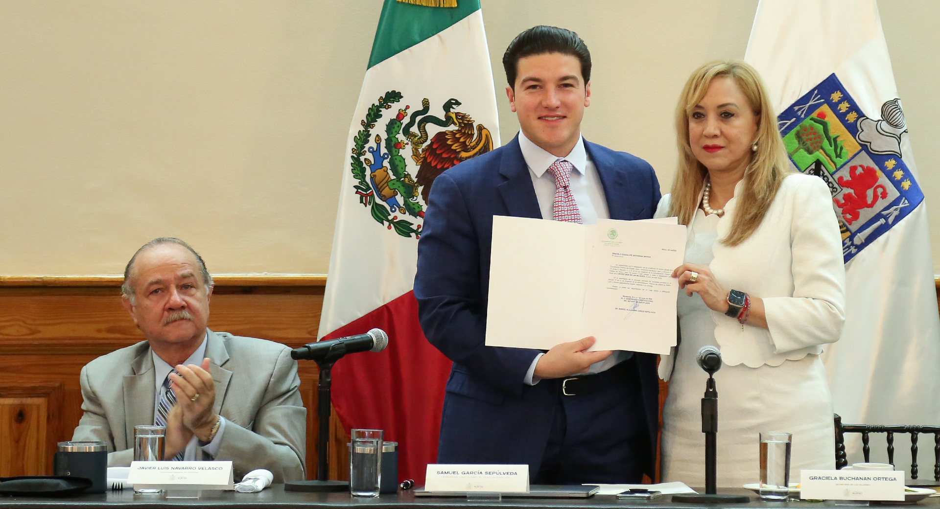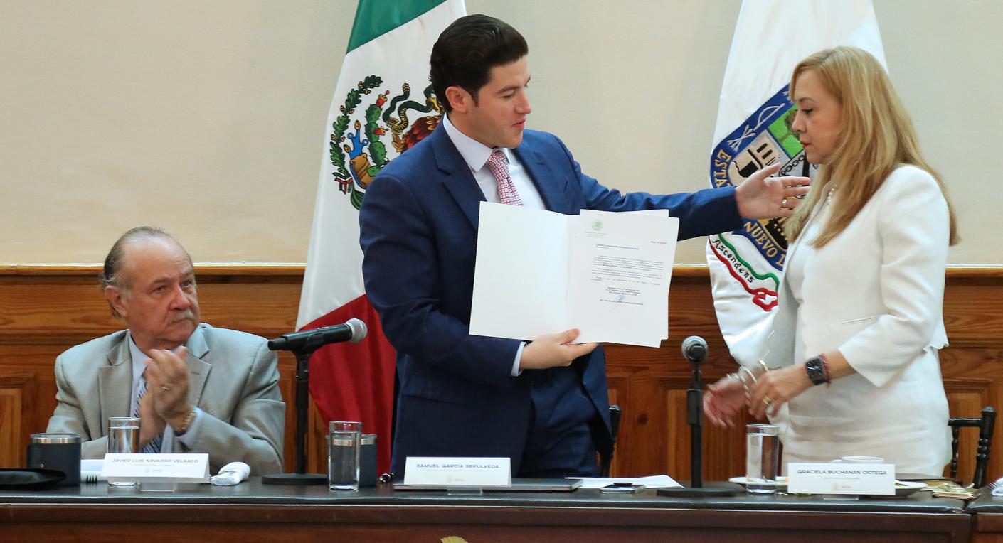 El Gobernador Samuel Alejandro García Sepúlveda entregó este martes el nombramiento a Graciela Buchanan como Secretaria de las Mujeres.