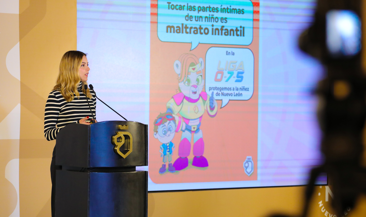 “Necesitamos que todas las niñas y niños de Nuevo León conozcan la línea 075, que sea una línea que conozcan, que difundan a través de sus parientes y sus amigos también para identificar cualquier tipo de maltrato infantil”, manifestó.