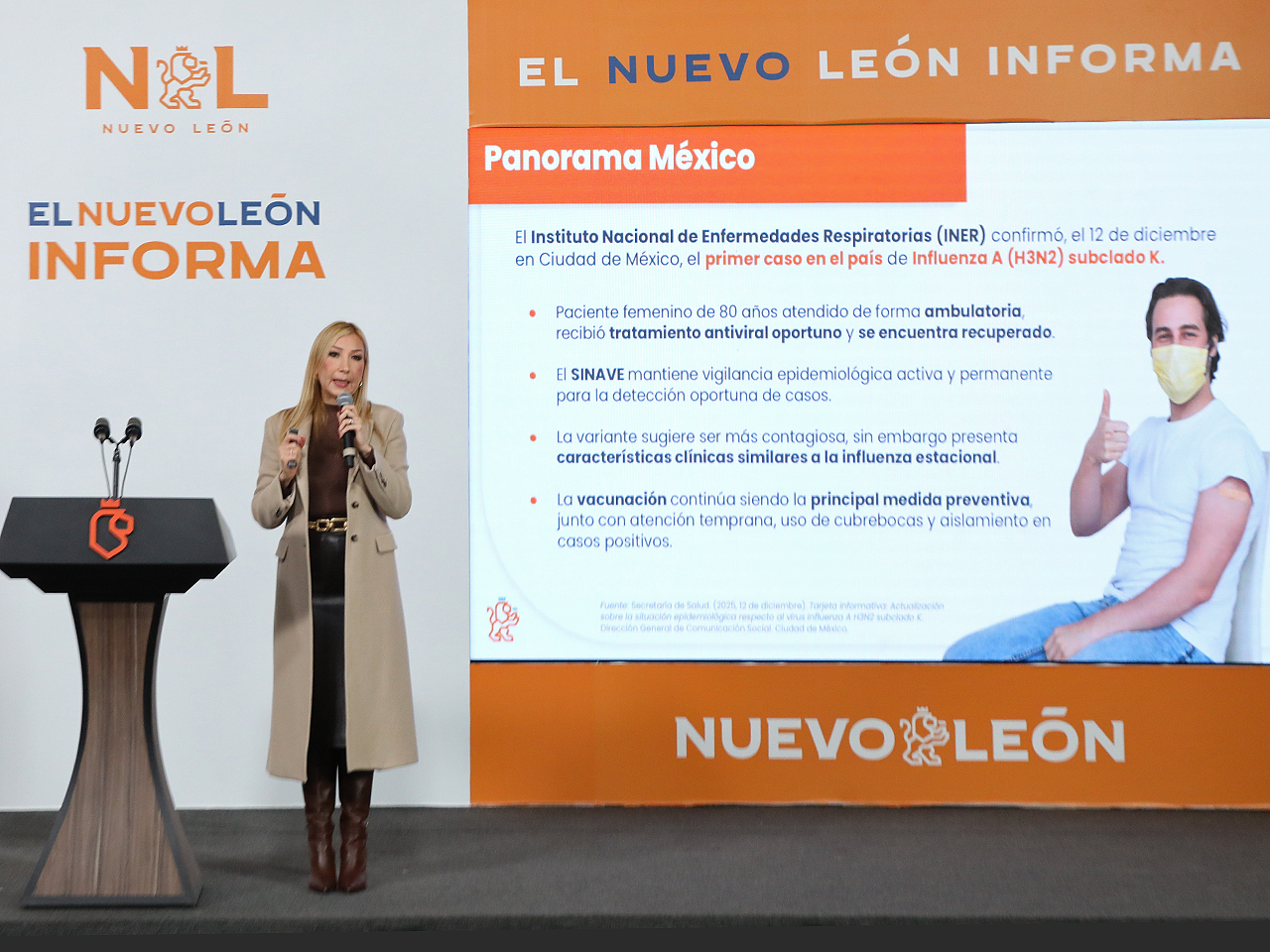 Durante el Nuevo León Informa, la titular de la dependencia, Alma Rosa Marroquín Escamilla, presentó el panorama epidemiológico actual y explicó que, aunque a nivel internacional se ha identificado una modificación genética del virus, en el estado no existe una alerta sanitaria activa.