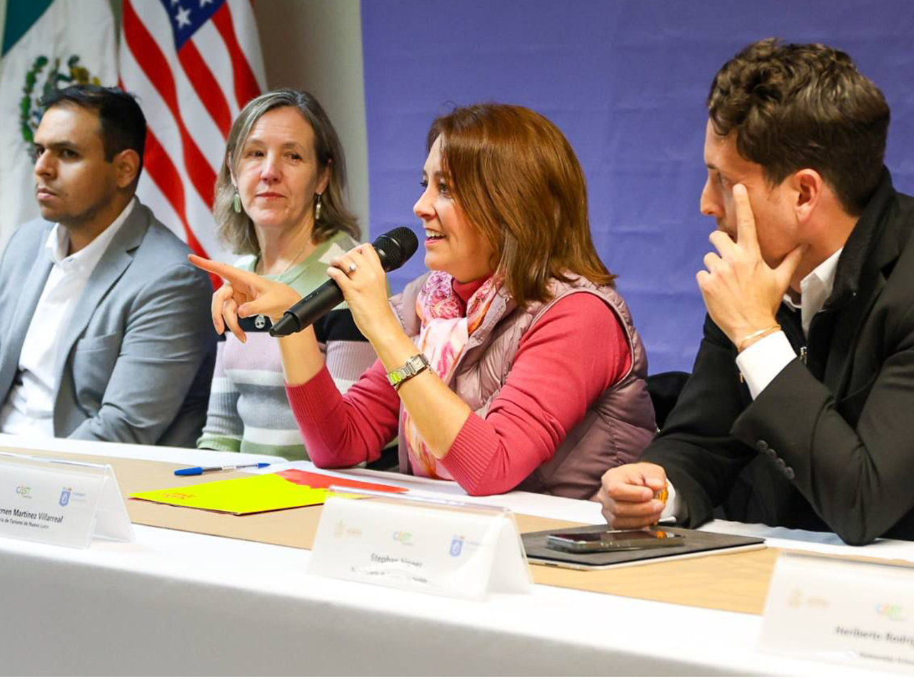 El presídium estuvo conformado por Maricarmen Martínez Villarreal, Secretaria de Turismo de Nuevo León; Jeanne Russell, directora ejecutiva de CAST Schools; Axel Cabrera, responsable de Diplomacia Pública de la U.S.-México Foundation; Jen Maestas, subdirectora de CAST Schools; y Heriberto Rodríguez, director senior de alianzas de CAST Schools.