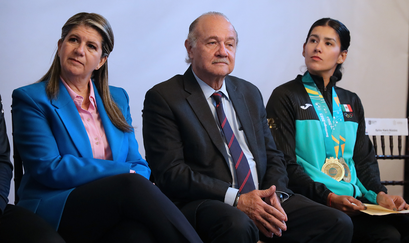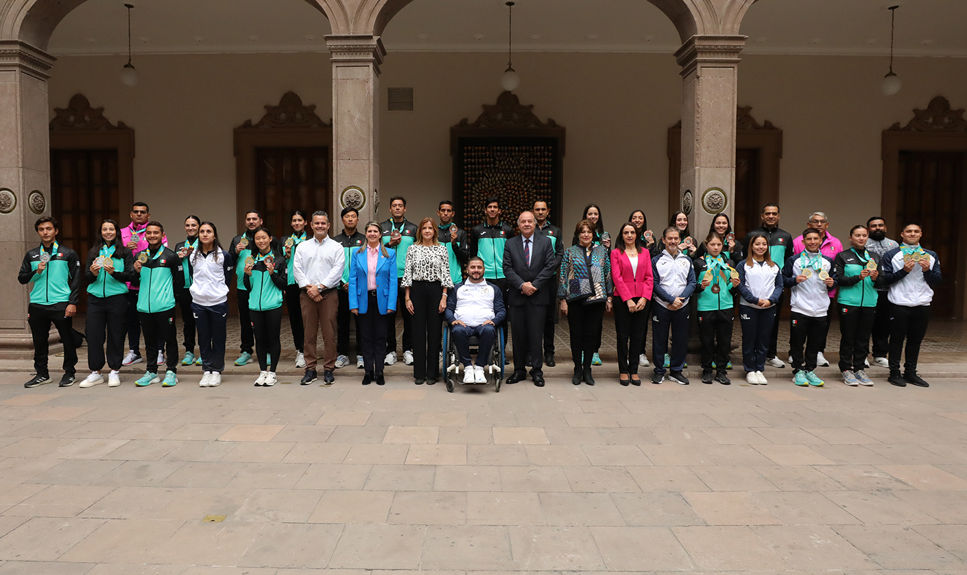 “Para mí es un gran honor estar aquí, no solamente son campeonas o campeones, sino son gente que sabe entregar su esfuerzo al mayor grado posible y que se oye muy fácil, traigo una medalla o traigo tres medallas, pero competir con cuántos países y cada uno de esos países manda sus mejores candidatas y candidatos y que ustedes regresen con esas preseas, realmente es para aplaudirlo, para reconocerlo y para hacer fiesta”, destacó el funcionario estatal.