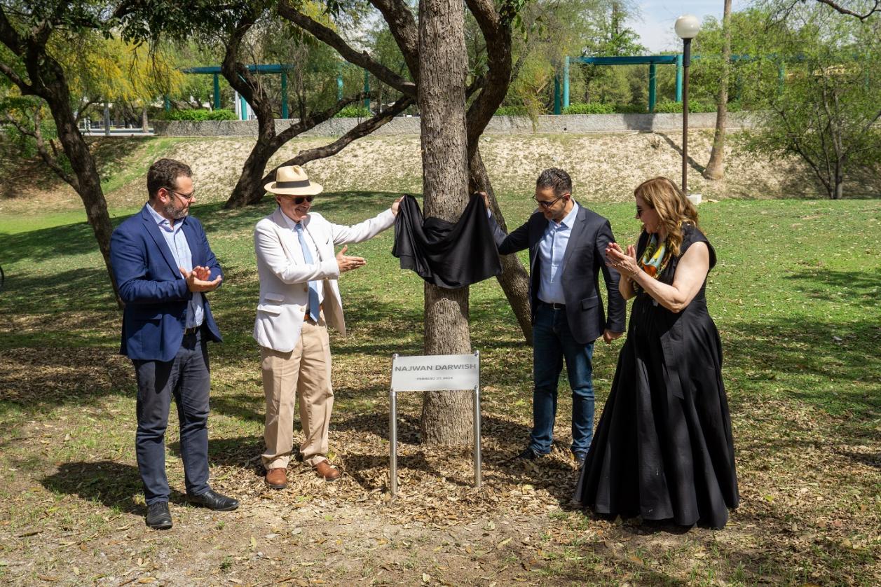 Distinguen con la Ceremonia del Árbol al poeta palestino en el sitio poético en Parque Fundidora.