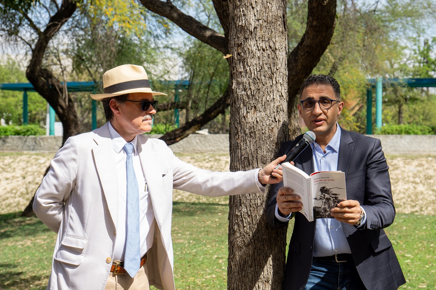 “Estar en este lugar dedicado a la poesía es un motivo para estar contento porque son grandes poetas y en cierto modo siento que son mis padres poéticos, estar cerca del árbol de Adonis o Joumana Haddad significa para mi muchísimo”, expresó el poeta Najwan Darwish.