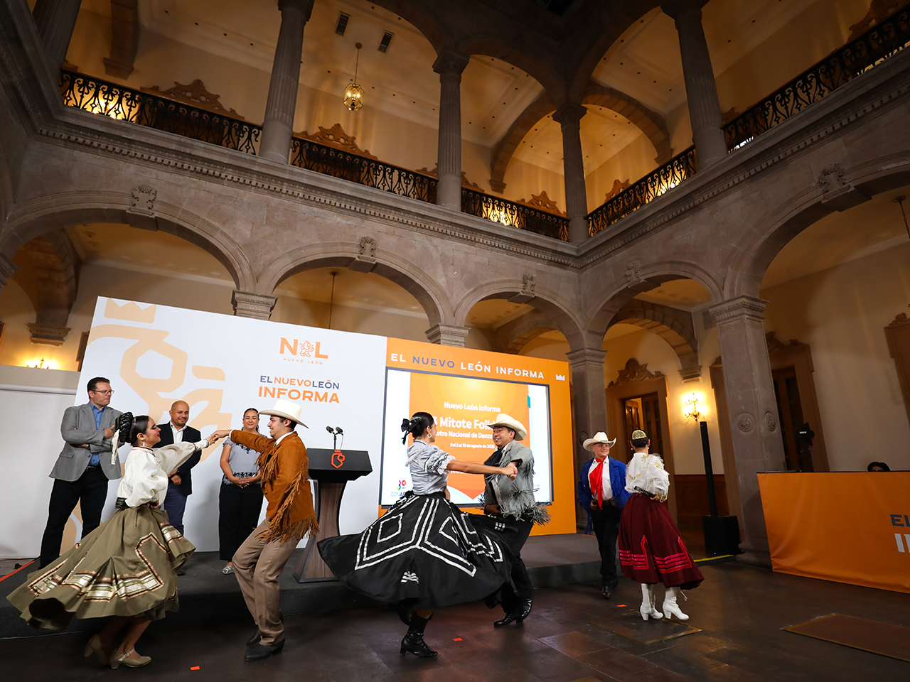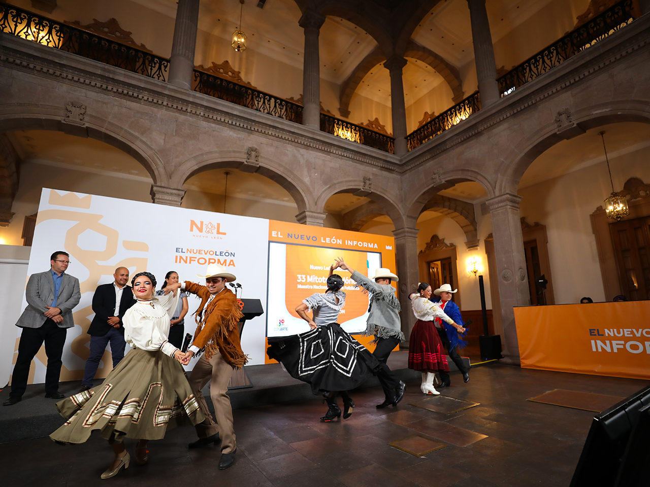 Como adelanto de lo que será esta gran fiesta folclórica, las autoridades culturales cerraron la ceremonia con la presentación de una muestra de danza tradicional de Nuevo León, en la que participaron parejas representantes de agrupaciones que estarán presentes en esta edición del Mitote.