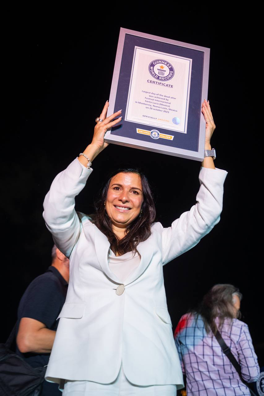 “¡Felicidades, Nuevo León! ¡Lo logramos!”, exclamó Lorenia Canavati von Borstel, Presidenta del Patronato del Festival Internacional Santa Lucía al recibir el certificado oficial que los reconocía como récord mundial.
