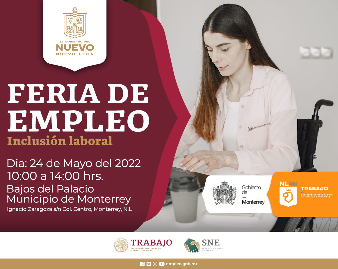 El martes 24 de mayo se llevará a cabo la Feria de Inclusión Laboral en los bajos del Palacio Municipal de Monterrey, dirigida a personas con discapacidad, adultos mayores y personas migrantes.