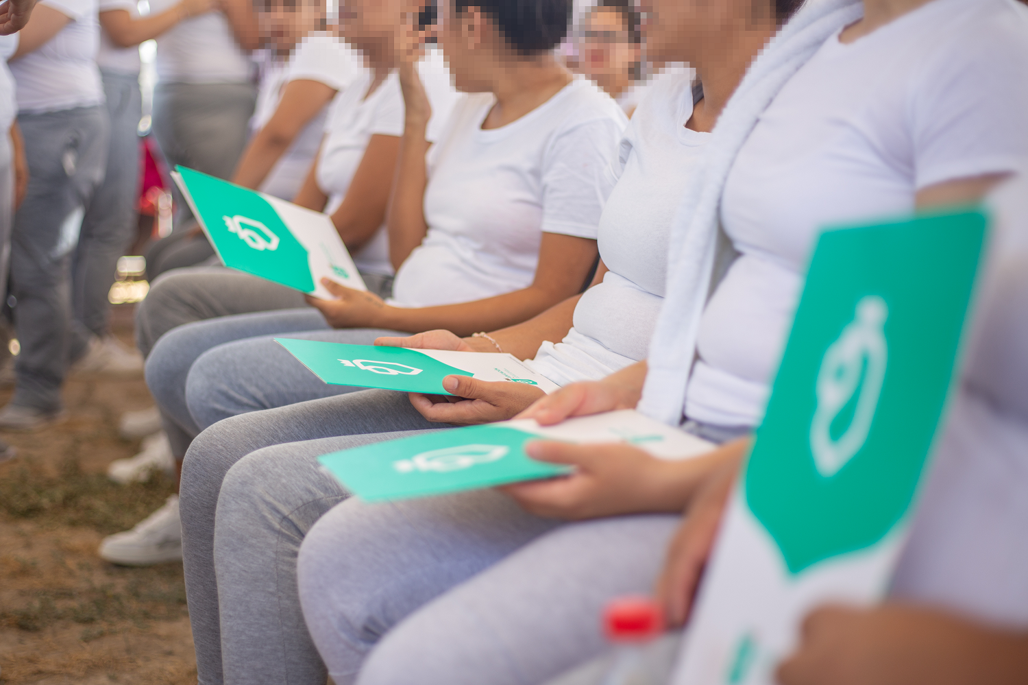 Al realizar un recorrido por los módulos de atención, la titular de Igualdad e Inclusión también hizo entrega de kits con productos de higiene personal a las mujeres.