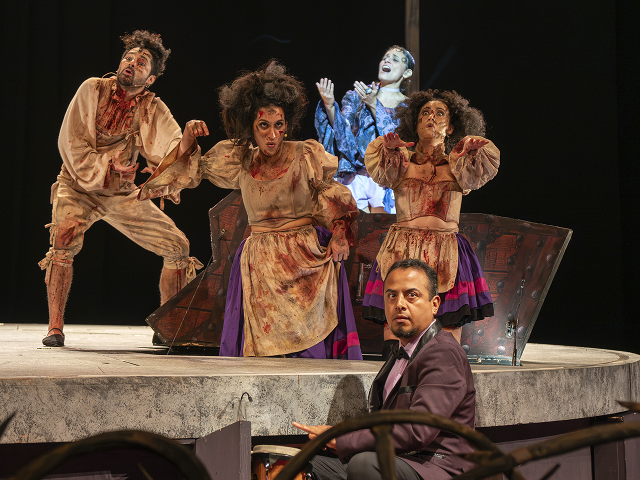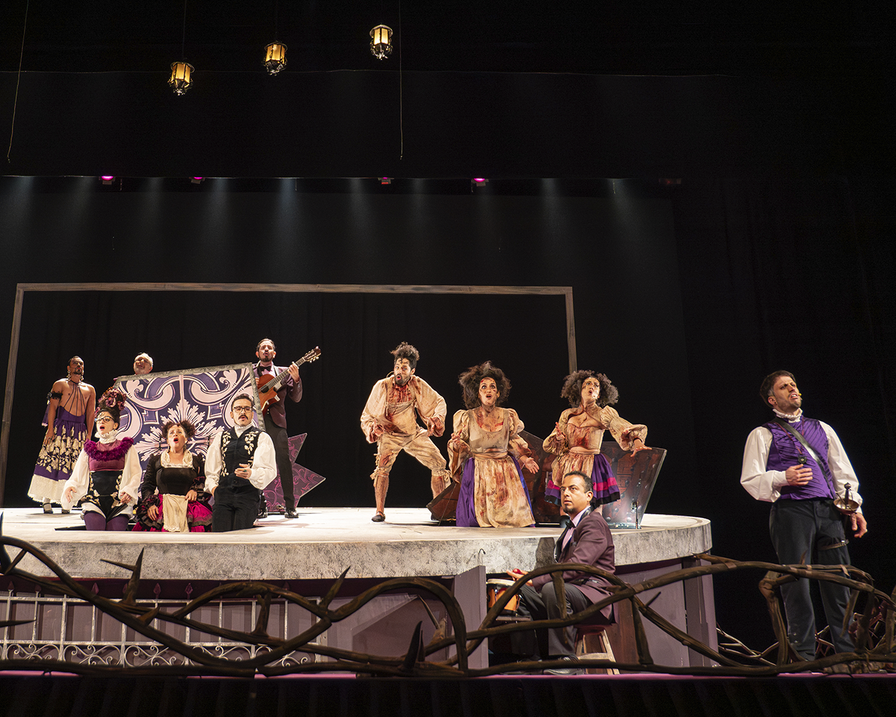 En este montaje realizado por la Compañía Nacional de Teatro para celebrar el 90 aniversario del Palacio de Bellas Artes, la música ocupa un lugar importante, ya que se entrelazan los diálogos con algunos boleros, que son interpretados por los actores y coreados por los asistentes. Este "karaoke" regio y monumental logró un ambiente de fiesta que se prolongó durante toda la representación.