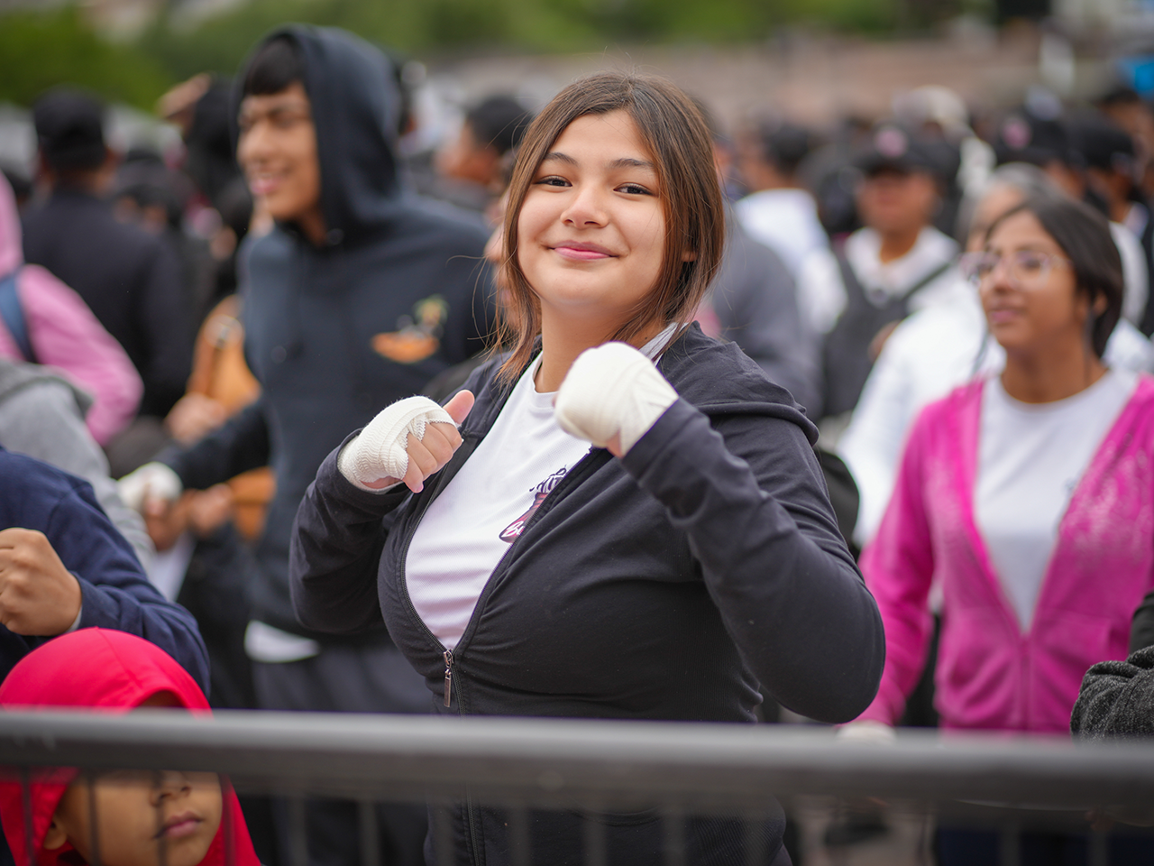 Monterrey, Nuevo León.- Un total de 400 atletas de los talleres deportivos de Centros Comunitario de la Secretaría de Igualdad e Inclusión participaron en la Clase Nacional de Boxeo en el marco del Día Internacional del Deporte para el Desarrollo y la Paz.