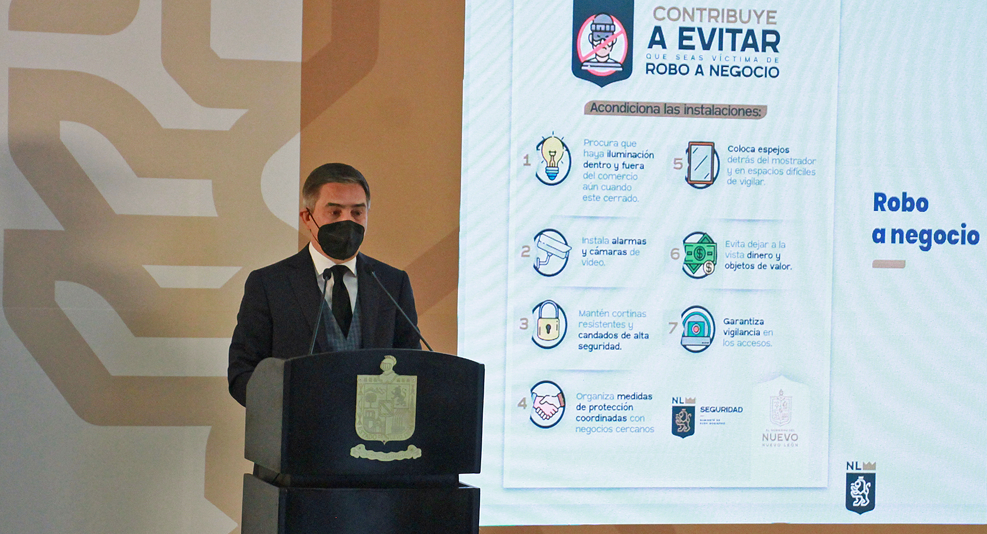 Recomendó iluminar los negocios por dentro y por fuera, alertas, cámaras, medidas de protección, vigilancia en los accesos; en casa proteger puertas y ventanas, y no abrir la puerta a desconocidos.