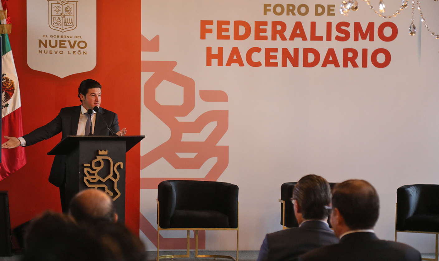 Al clausurar el Foro “Federalismo Hacendario”, el Gobernador Samuel Alejandro García Sepúlveda pidió llegar a un consenso general de todos los sectores de la sociedad para ajustar la actual distribución de recursos federales y retribuir un 50 por ciento de lo que se recauda a los estados.
