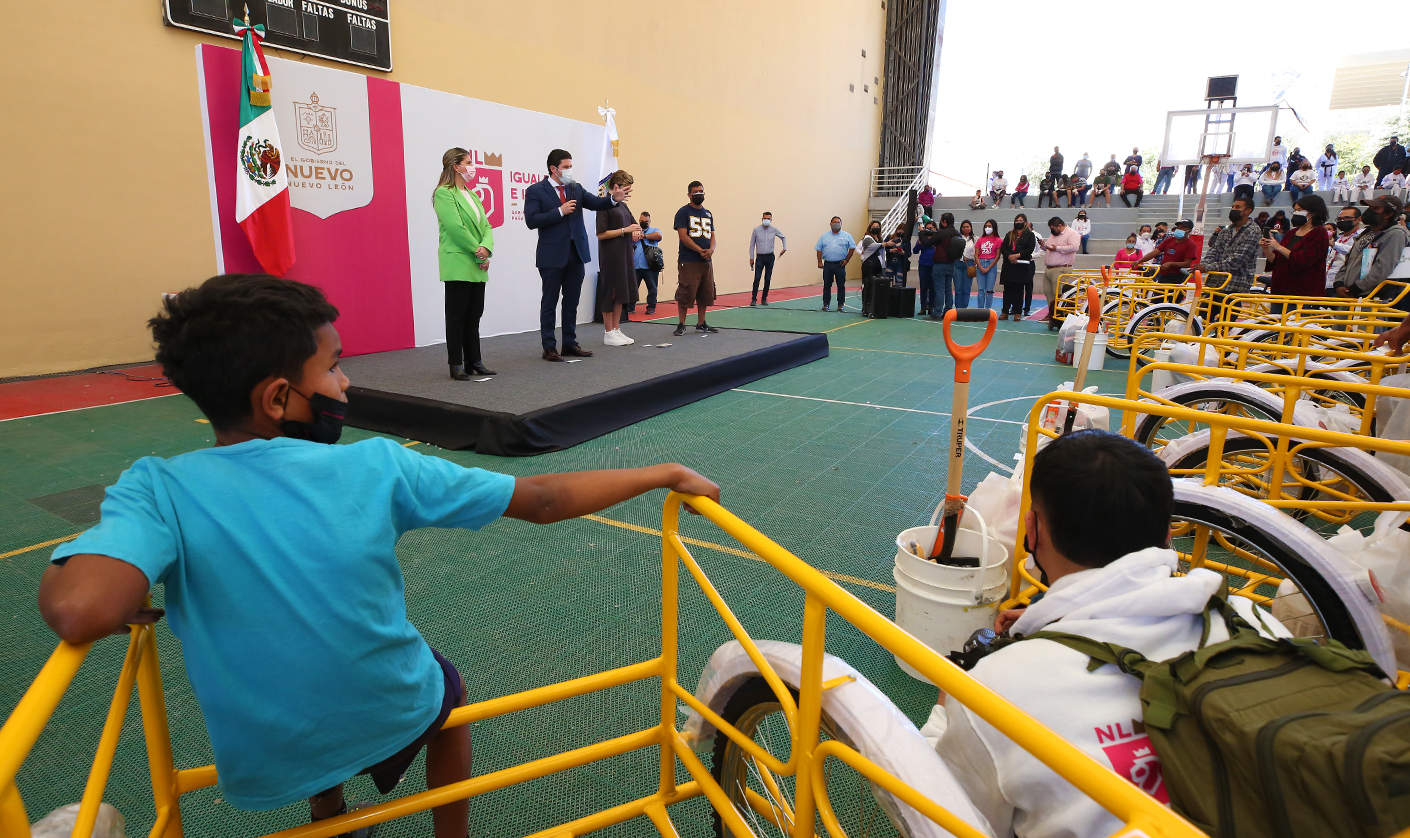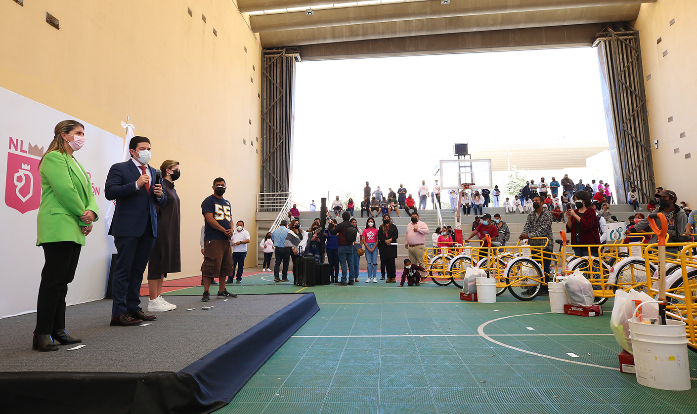 En el Macrocentro Comunitario San Bernabé, el Gobernador Samuel García entregó los triciclos de carga gestionados por la Secretaría del Medio Ambiente y donados por: PASA, ARCA, PETSAR y Capital 2030, los que les permitirán garantizar ingresos económicos y mejorar su calidad de vida.