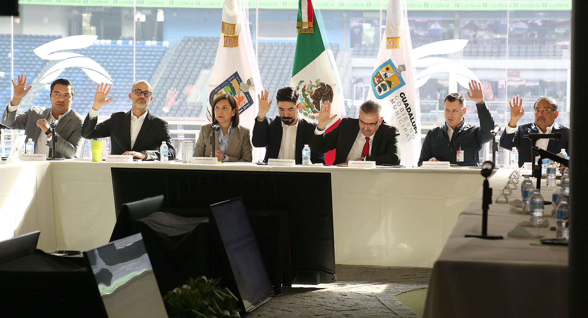 En la sesión también estuvieron presentes el Secretario de Economía, Iván Rivas; los Alcaldes de Monterrey, Luis Donaldo Colosio; de San Pedro, Miguel Treviño; de Escobedo, Andrés Mijes; de Apodaca, César Garza y de San Nicolás, Daniel Carrillo; Jesús Nava, de Santa Catarina quien, respaldado por el Secretario de Economía, presentó la agenda prioritaria para la Comisión de Desarrollo Urbano y Mejora Regulatoria.