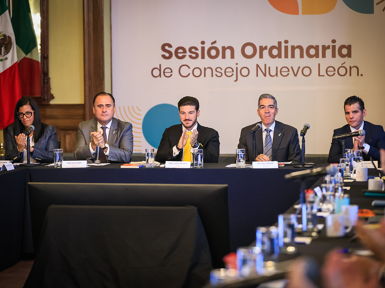 Monterrey, Nuevo León.- El Gobernador del Estado, Samuel Alejandro García Sepúlveda presentó este miércoles al Consejo Nuevo León la estrategia Ponte Nuevo, Ponte Mundial; sesión en la que asumió como presidente de este órgano colegiado, Andrés Garza Herrera.