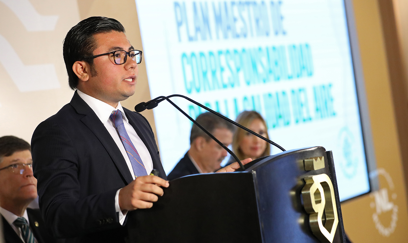 Monterrey, Nuevo León.- El Secretario de Medio Ambiente Félix Arratia Cruz, presentó el Plan Maestro de Corresponsabilidad para la Calidad del Aire del Gobierno del Estado de Nuevo León, que consta de ocho enfoques estratégicos para reducir la emisión de contaminantes a la atmósfera.