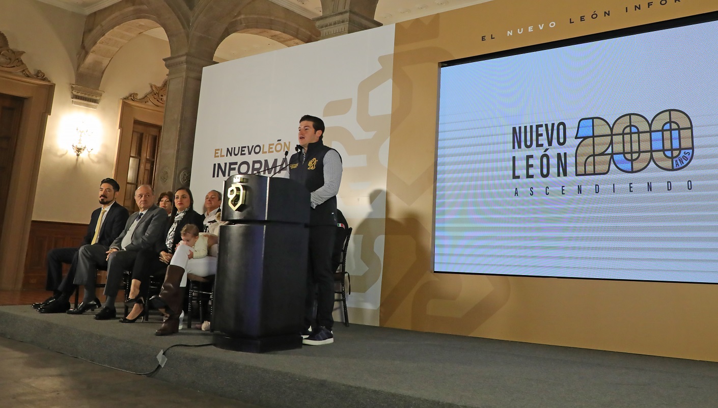 En Palacio de Gobierno, García Sepúlveda dijo que para esta celebración se creó la marca que refleja que Nuevo León lleva 200 años ascendiendo, 200 años imparables.