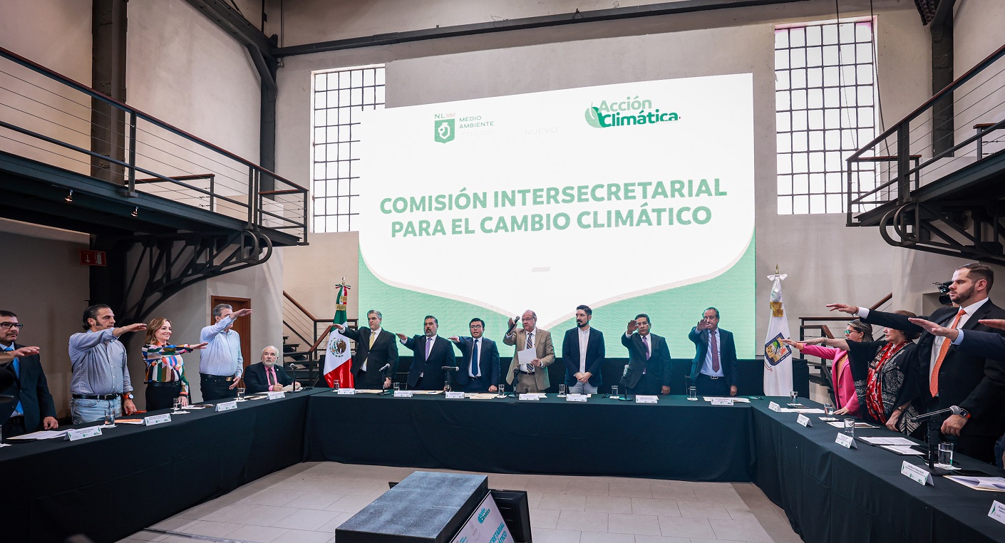 Antes de la presentación, se instaló la Comisión Intersecretarial para el Cambio Climático, Nuevo León tiene un cuerpo técnico que le dará seguimiento al Programa Estatal de Cambio Climático en su ejecución y evaluación para aplicar estrategias y acciones que mitiguen sus efectos en el ámbito metropolitano.